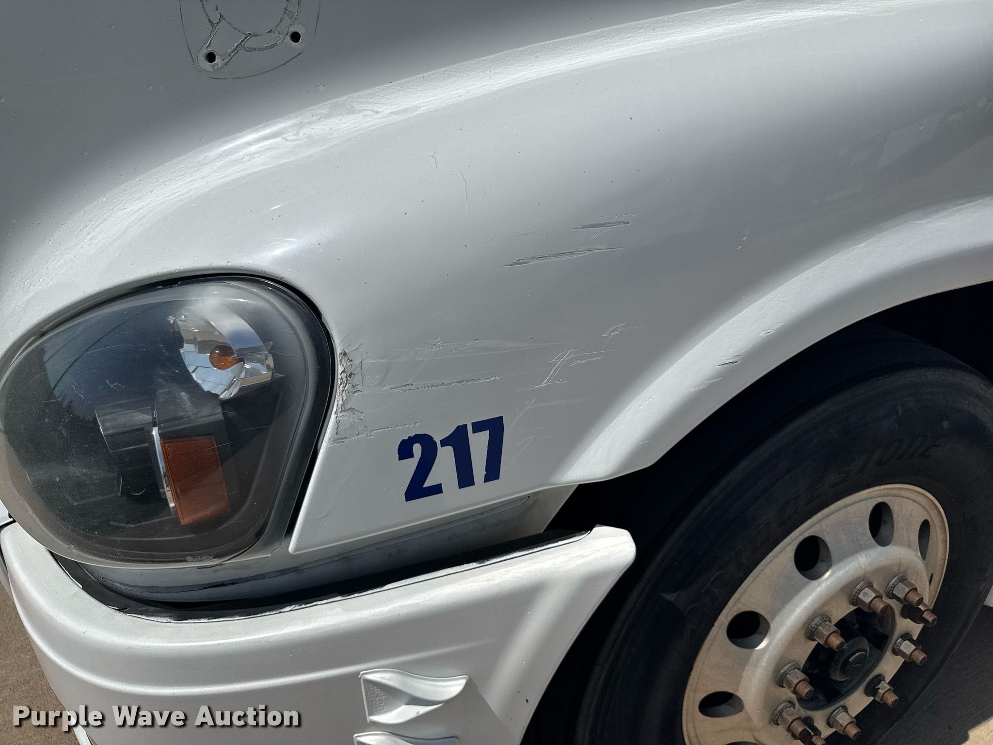 2014 Freightliner Cascadia semi truck. Miles: 928,018 on odometer, VIN: 1FUJGLD58ELFY2129, Unit #: 217. Engine Detroit Diesel, Displacement: 14.8L, Cylinders: 6, Fuel type: Diesel, Engine brake. Transmission Automated manual. Chassis Axles: Tandem, Differential lock: Inter-axle, Suspension: Air Dump valves, Brakes: Air, GVWR: 52,350 lbs FAWR: 12,350 lbs, IAWR: 20,000 lbs, RAWR: 20,000 lbs. Interior AC, Heat, Heated mirrors, Power windows, Power locks, Cruise control, Air ride cab, Sleeper Sleeper length: 60", Beds: Double bunk, Refrigerator, Rear climate control, Auxiliary power unit Thermo King TriPac. Features Deck plate: Aluminum, Fifth wheel type: Air operated, Sliding, Fuel tank: Dual. Tires Size: 295/75R22.5. Notes Dash warning indicator: Brake, Unknown operating condition of auxiliary power unit. Kansas title. Title distribution may be delayed up to 14 days from verification of funds. Doug Bradley Trucking Inc.. Salina, KS 67401