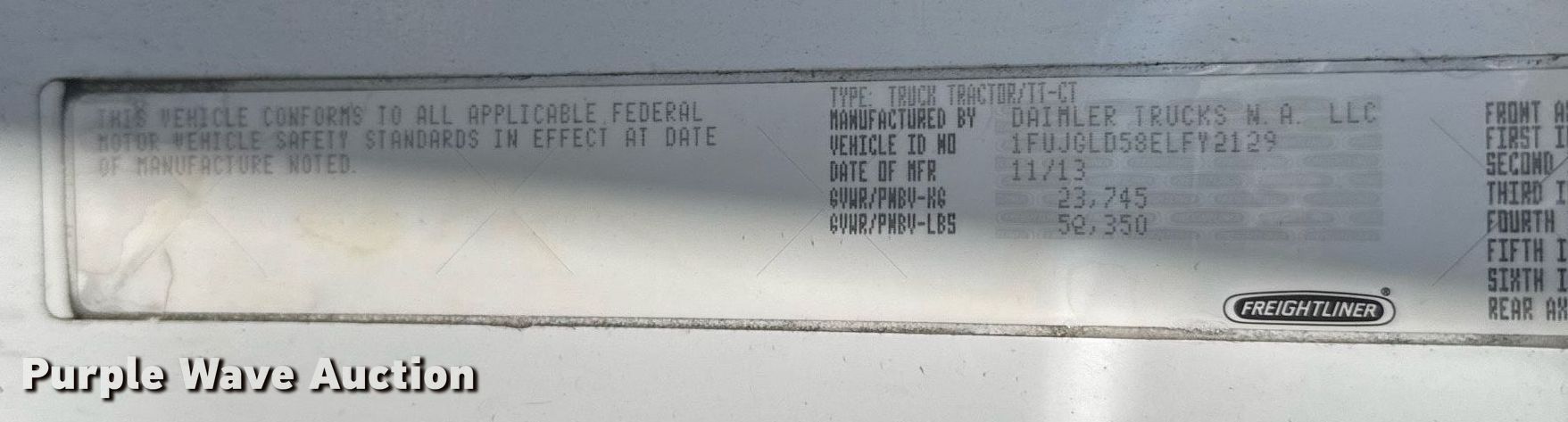 Purple Wave is selling a used Truck Tractor in Kansas. This item is a 2014 Freightliner Cascadia semi truck with the following: Miles: 928,018 on odometer, VIN: 1FUJGLD58ELFY2129, Unit #: 217