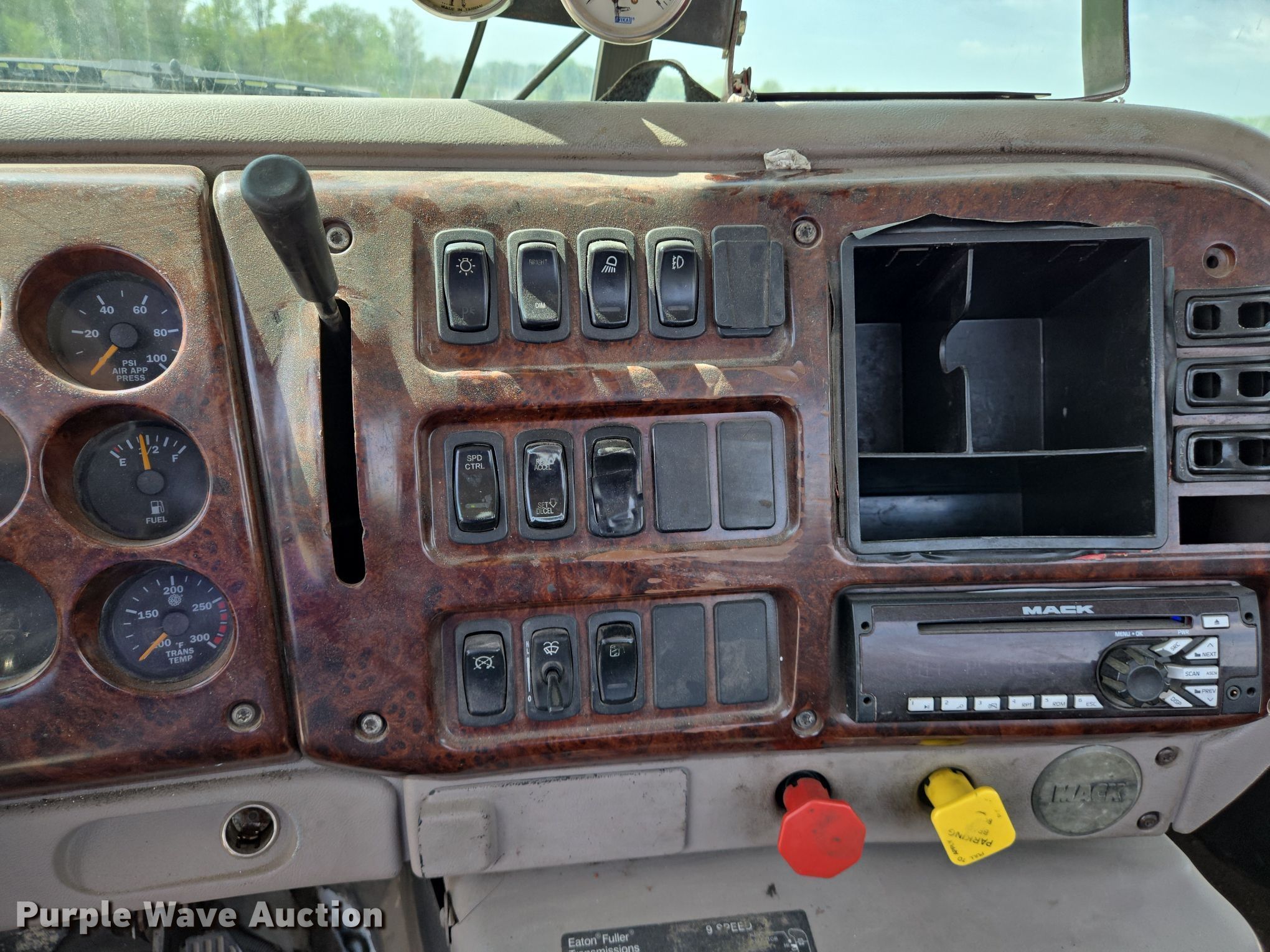 2006 Mack CXN semi truck. Miles: 296,281 on odometer, Hours: 39,633 on meter, VIN: 1M1AK06YX6N009571. Engine Displacement: 12.0L, Cylinders: 6, Fuel type: Diesel. Transmission Eaton Fuller, Manual, Speed: 9. Chassis Axles: Tandem, Differential lock: Inter-axle, Suspension: Air Dump valves, Brakes: Air, PTO, Wet kit, GVWR: 52,000 lbs FAWR: 12,000 lbs, IAWR: 20,000 lbs, RAWR: 20,000 lbs. Interior AC, Heat, Heated mirrors, Cruise control, Air ride cab. Features Deck plate: Aluminum, Fifth wheel type: Air operated, Sliding, Fuel tank: Dual. Tires Size: 11R22.5. Illinois title. Title distribution may be delayed up to 14 days from verification of funds. Dorris Trucking Inc.. Sesser, IL 62884
