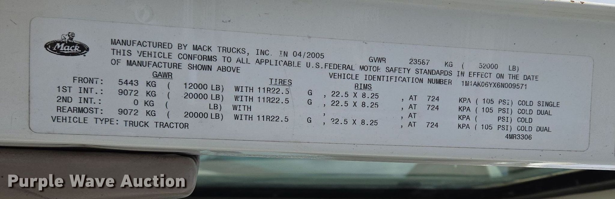 Take a look at this used 2006 Mack CXN semi truck being sold on June 26th, 2025 in the SOLD! June 26 Truck and Trailer Auction made by Mack. Take a look at all of the item information below or take a look at similar auctions for Trucks.