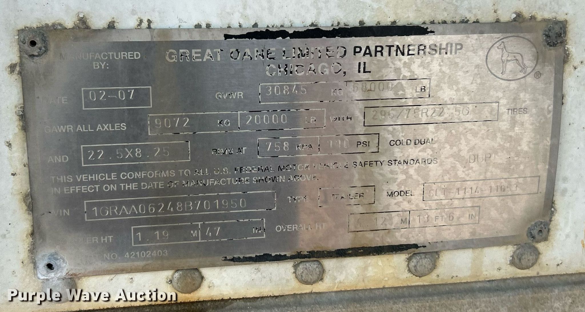 Take a look at this used 2008 Great Dane SLT-1114-11053 refrigerated van trailer being sold on June 26th, 2025 in the SOLD! June 26 Truck and Trailer Auction made by Great Dane. Take a look at all of the item information below or take a look at similar auctions for Trailers.