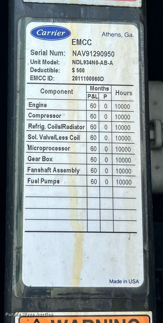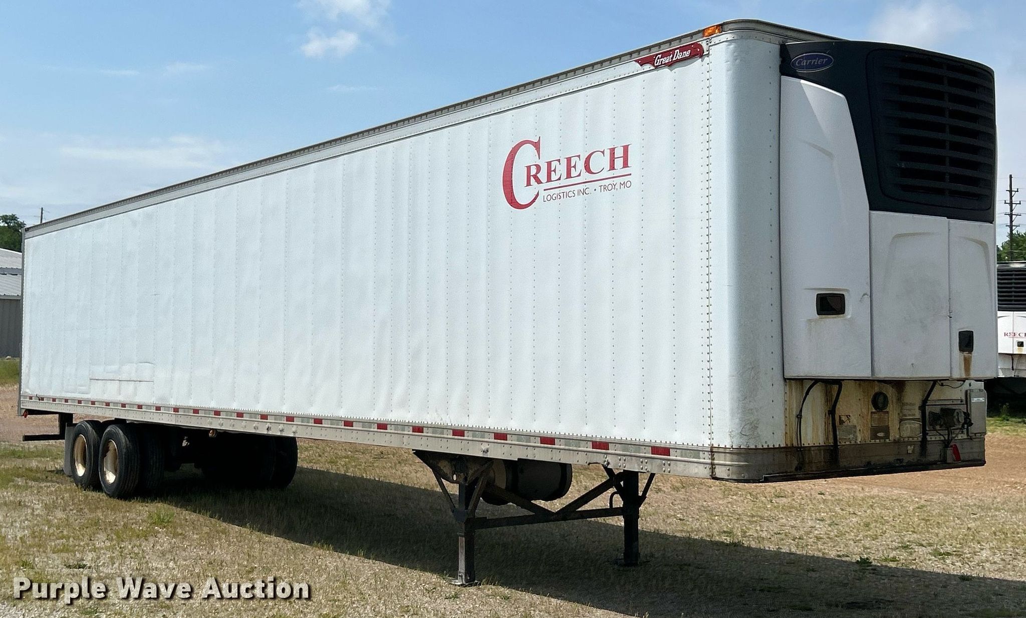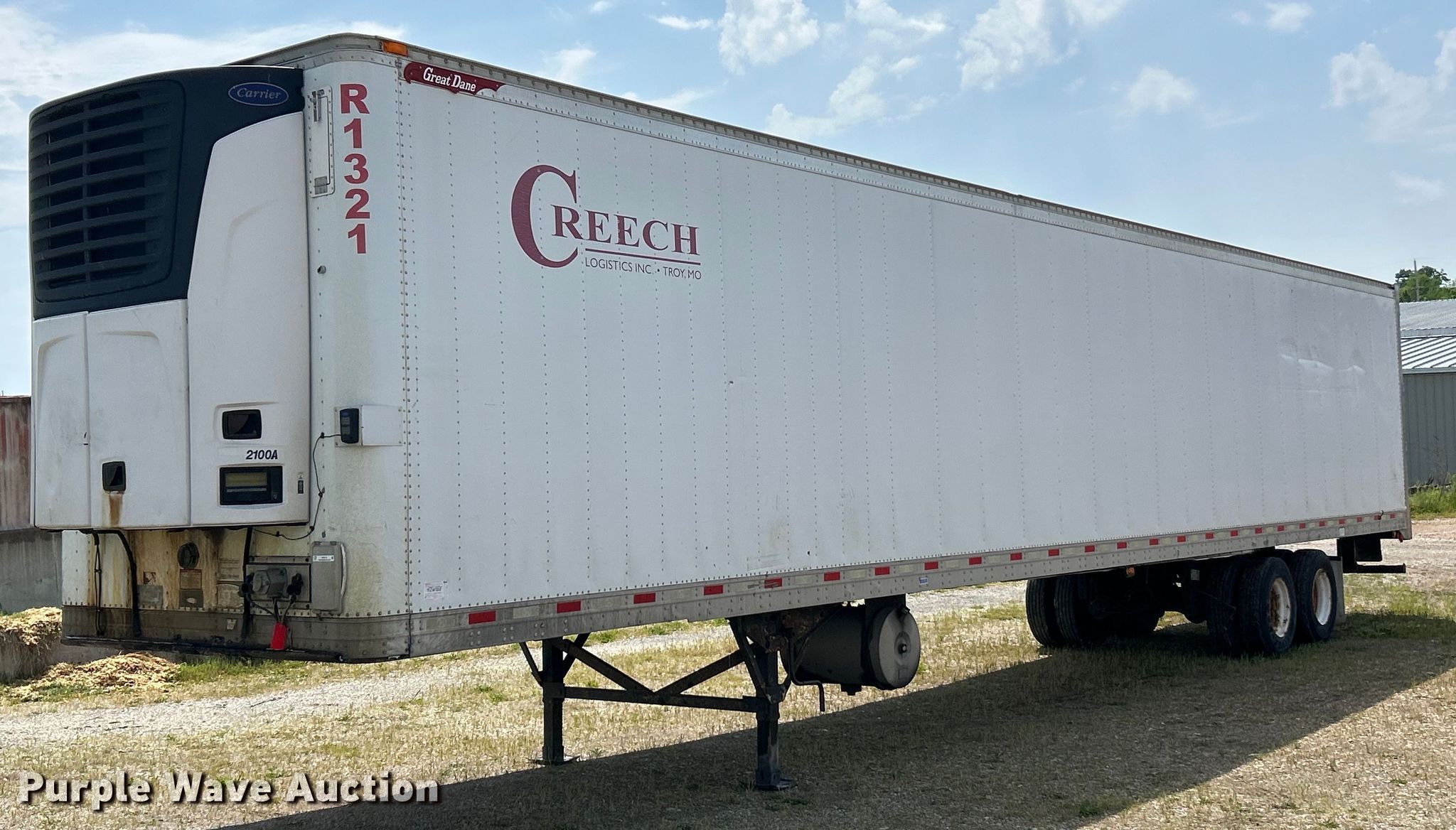 2013 Great Dane CTL-11144-11053 refrigerated van trailer. VIN: 1GRAA0627DB702682. Dimensions Overall: 53' L x 102" W. Features Deck type: Aluminum, Refrigeration unit Carrier 2100A. Chassis Landing gear: Dual, Suspension: Air, Brakes: Air, Axles: Tandem Sliding, GVWR: 68,000 lbs., GAWR: 20,000 lbs.. Tires Steel wheels, Size: 295/75R22.5. Missouri title. Title distribution may be delayed up to 14 days from verification of funds. Creech Logistics. Troy, MO 63379