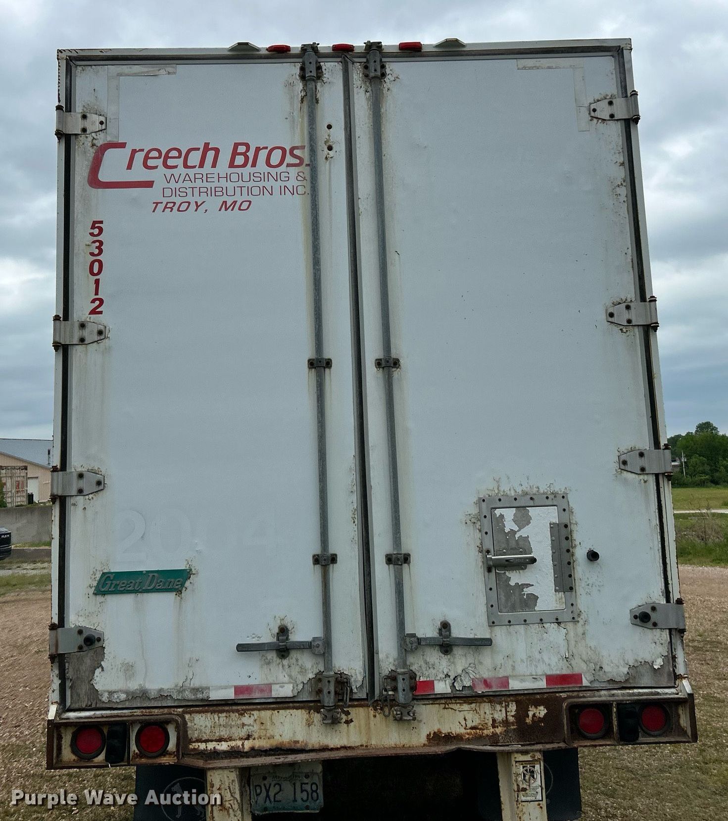 2005 Great Dane 7311TP-3A dry van trailer. VIN: 1GRAA06215T516616. Dimensions Overall: 53' L x 102" W. Features Deck type: Wood. Chassis Landing gear: Dual, Suspension: Air, Brakes: Air, Axles: Tandem Sliding, GVWR: 68,000 lbs., GAWR: 20,000 lbs.. Tires Steel wheels, Size: 295/75R22.5. Missouri title. Title distribution may be delayed up to 14 days from verification of funds. Creech Logistics. Troy, MO 63379
