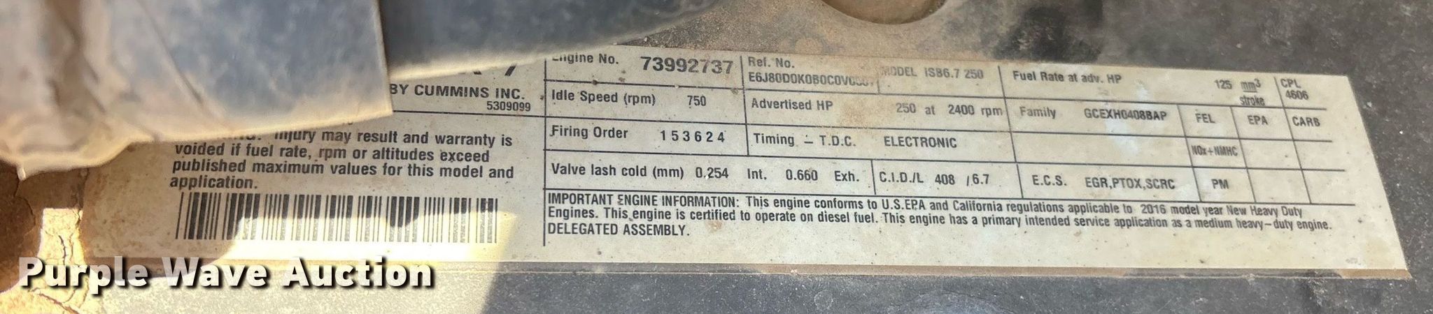 2017 Peterbilt 337 truck cab and chassis. Miles: 109,989 on odometer, Hours: 8,364 on meter, VIN: 2NP2HM6X4HM421207. Engine Paccar PX7, Displacement: 6.7L, Cylinders: 6, Fuel type: Diesel. Transmission Allison, Automatic. Chassis Axles: Single, Differential lock: Inter-axle, Suspension: Spring, Brakes: Air, Truck chassis: 184". Interior AC, Heat, Power windows, Power locks, Cruise control. Features Fuel tank: Single. Tires Size: 11R22.5. Oklahoma title. Title distribution may be delayed up to 30 days from verification of funds. Collinsville, OK 74021