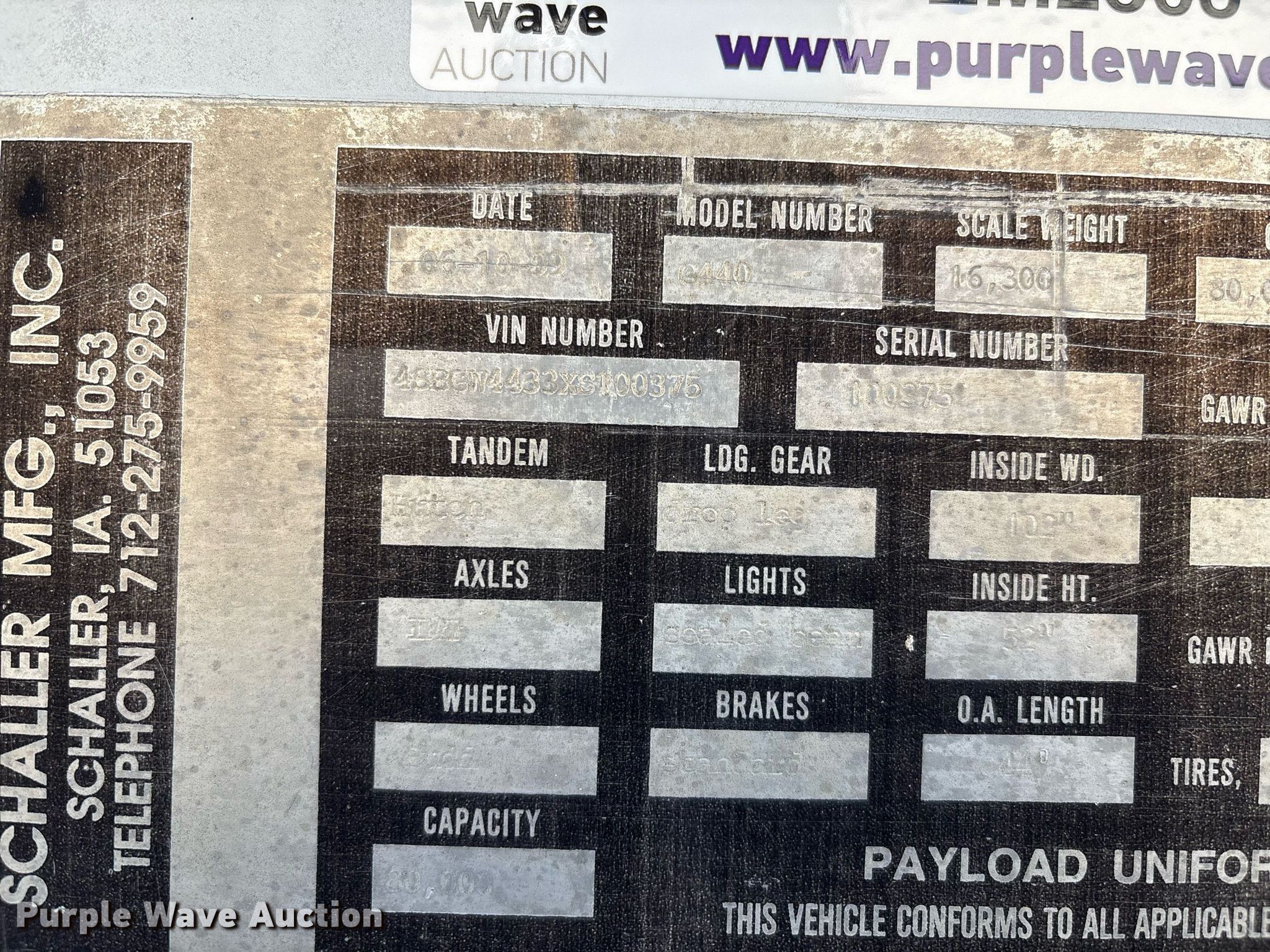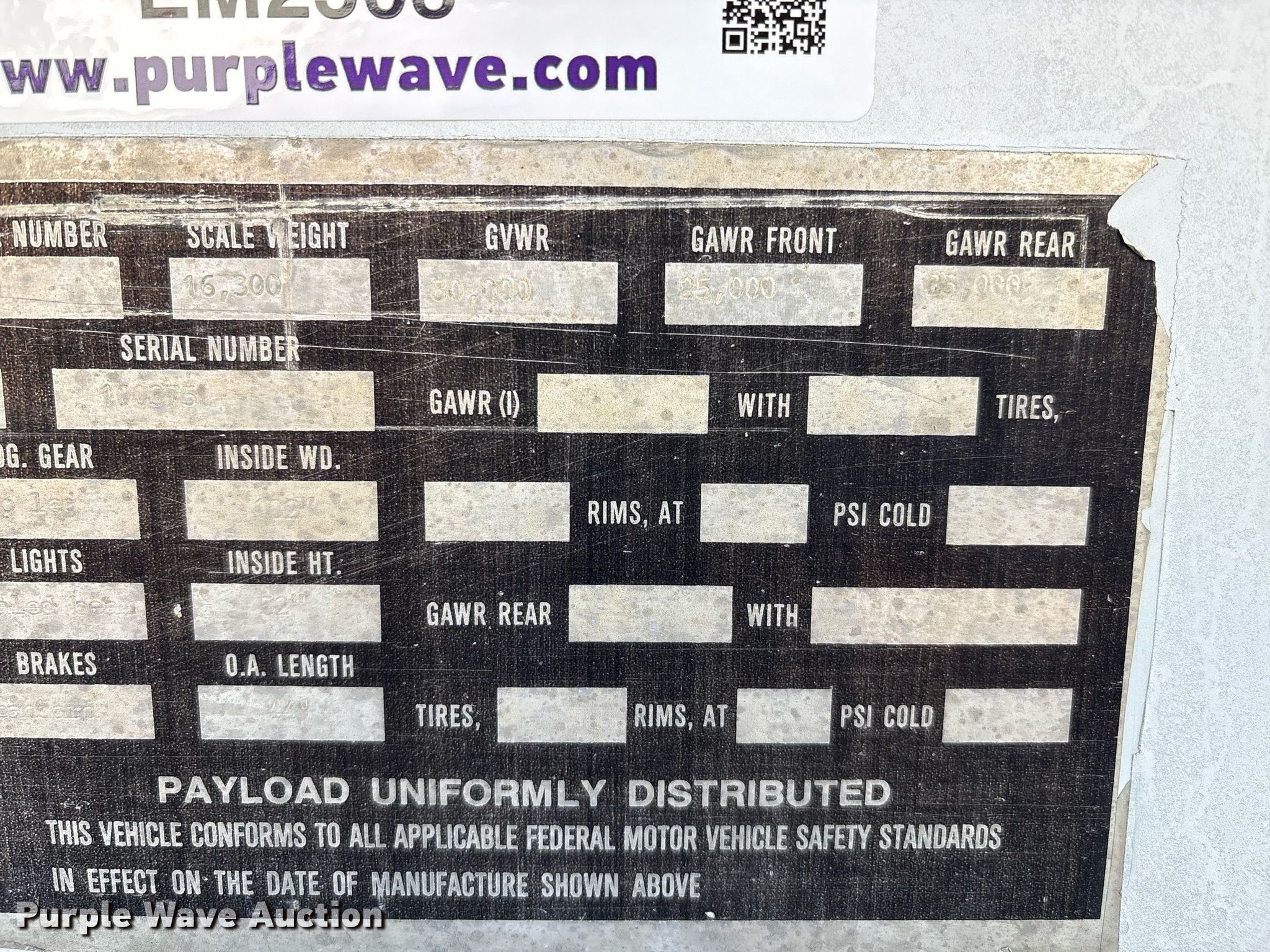 1999 Roadmaster G440 bottom dump trailer. VIN: 4SBGW4433XS100375. Dimensions Overall: 44' L x 101" W, Side height: 52", Sideboard height: 62". Features Body type: Steel, Clamshell gate: Air operated, Trailer controls, Rear push block, Roll tarp. Chassis Suspension: Spring, Brakes: Air, Axles: Tandem, Tag axle, GVWR: 80,000 lbs. Tires Steel wheels, Size: 11R22.5, Tag axle: 255/70R22.5. Notes Semi not included. Oklahoma title. Title distribution may be delayed up to 30 days from verification of funds. Kiefer, OK 74041