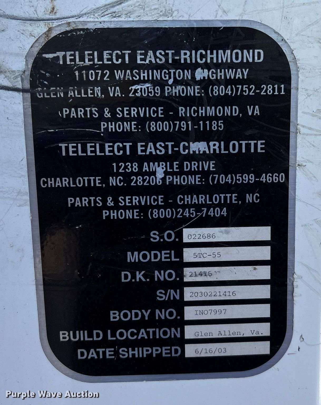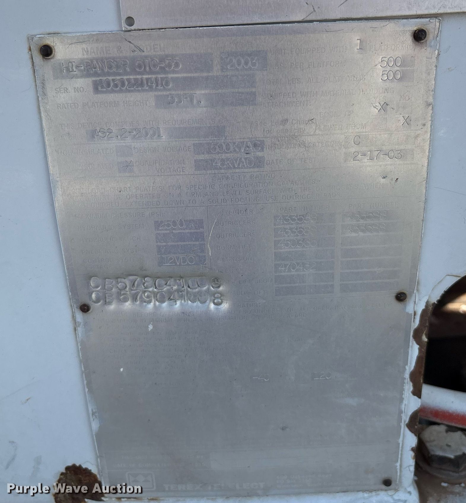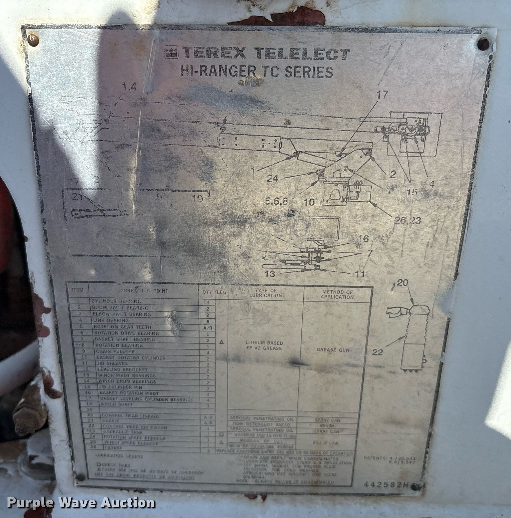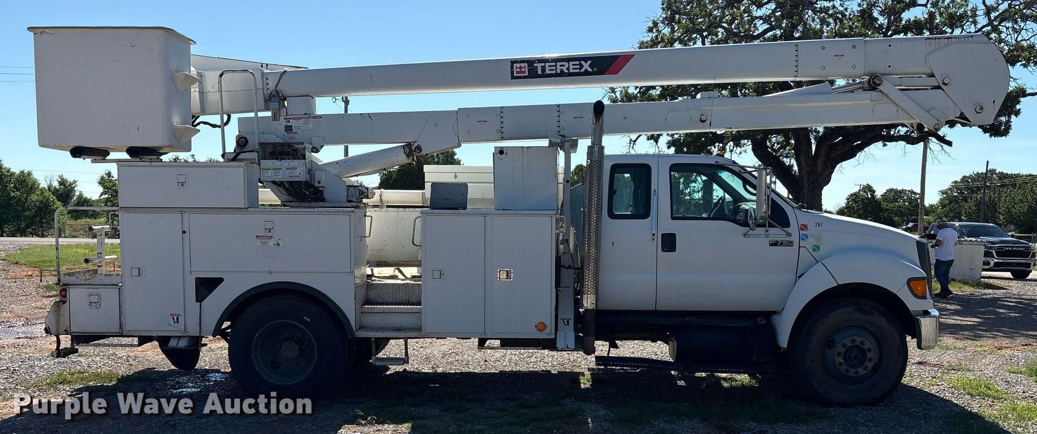 2004 Ford F750 Super Duty bucket truck. Miles: 178,755 on odometer, VIN: 3FRXX76324V612284. Engine Caterpillar 3126, Displacement: 7.2L, Cylinders: 6, Fuel type: Diesel. Transmission Allison, Automatic. Chassis Axles: Single, Suspension: Spring, Brakes: Air, PTO, GVWR: 33,000 lbs. Interior AC, Heat, Cruise control. Features Bed TEREX 5TC-55, Serial: 022686, 15' L x 95" W, Boom 2003 TEREX HI Ranger 5TC-55, Maximum lift capacity: 500 lbs, Maximum lift height: 55', Boom type: Articulating, Insulated, Telescopic, Man basket, Boom controls Ground, Platform/ basket, Material handler. Tires Size: 11R22.5. Oklahoma title. Title distribution may be delayed up to 30 days from verification of funds. Titan Powerline LLC. Comanche, OK 73529