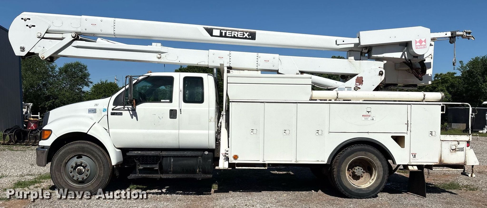 Purple Wave is selling a used Bucket Truck in Oklahoma. This item is a 2004 Ford F750 Super Duty bucket truck with the following: Miles: 178,755 on odometer, VIN: 3FRXX76324V612284