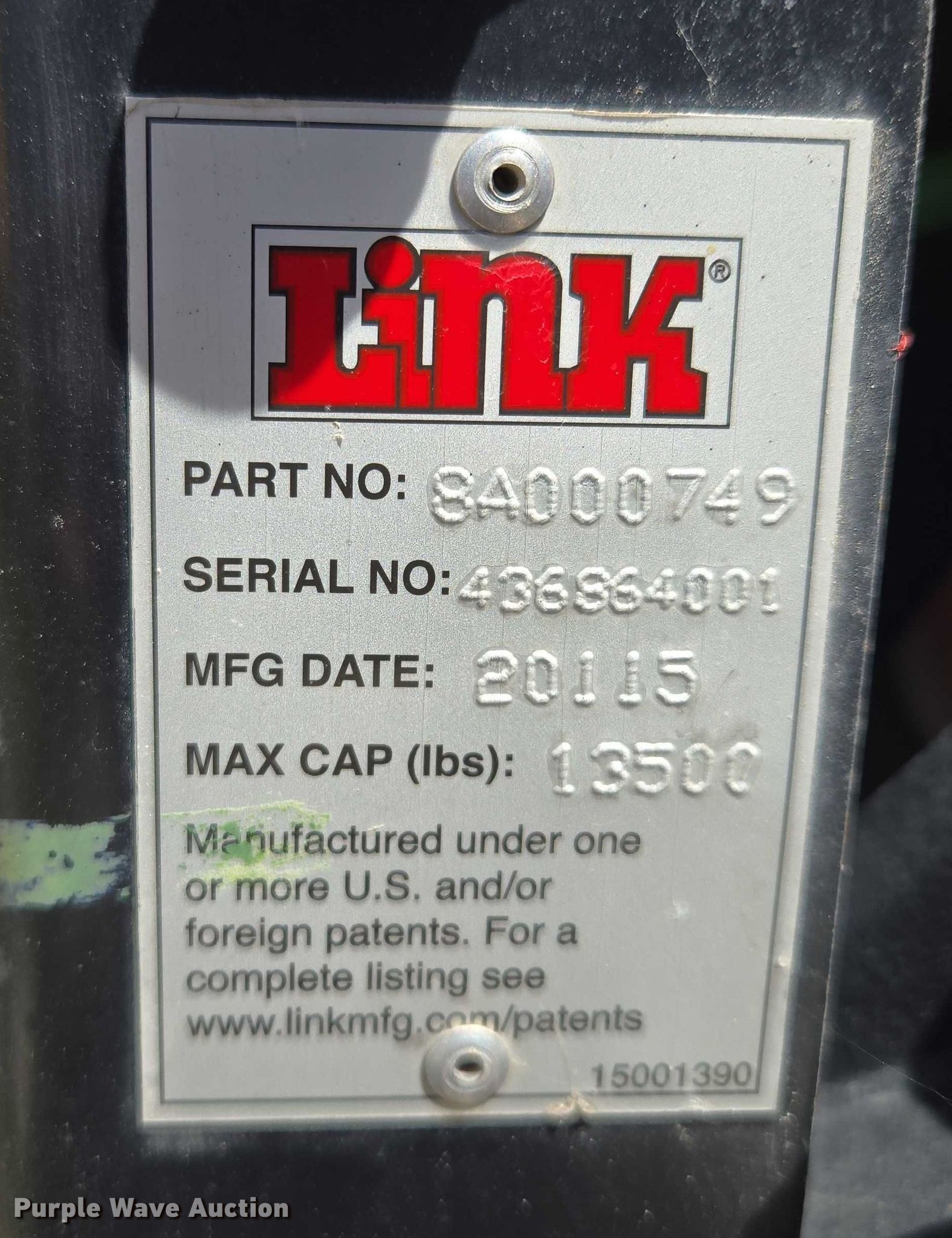 Purple Wave is selling a used Truck Part and Attach. in Missouri. This item is a Link pusher axle with the following: Serial: 436864001, Part Number: 8A000749, Max capacity: 13,500 lbs, Air Brakes, Air Suspension