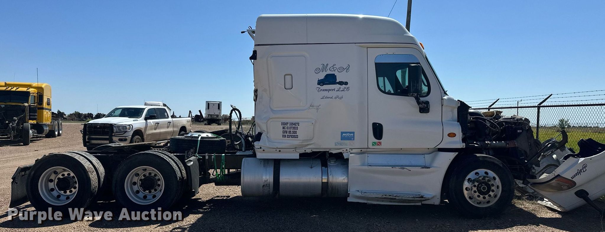Purple Wave is selling a used Truck Tractor in Kansas. This item is a 2014 Freightliner Cascadia semi truck with the following: Miles: 1,146,523 on odometer, Actual miles: Unknown, VIN: 3AKJGLDR3ESFK5523