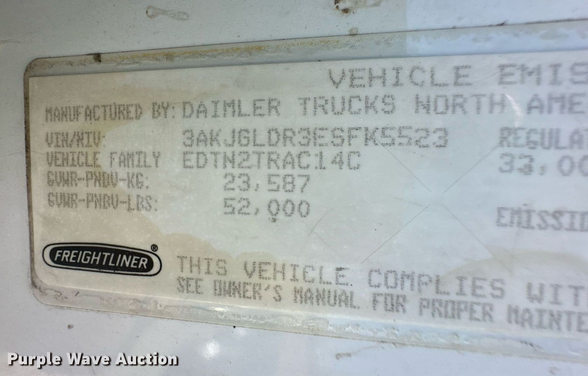 - VIN: 3AKJGLDR3ESFK5523