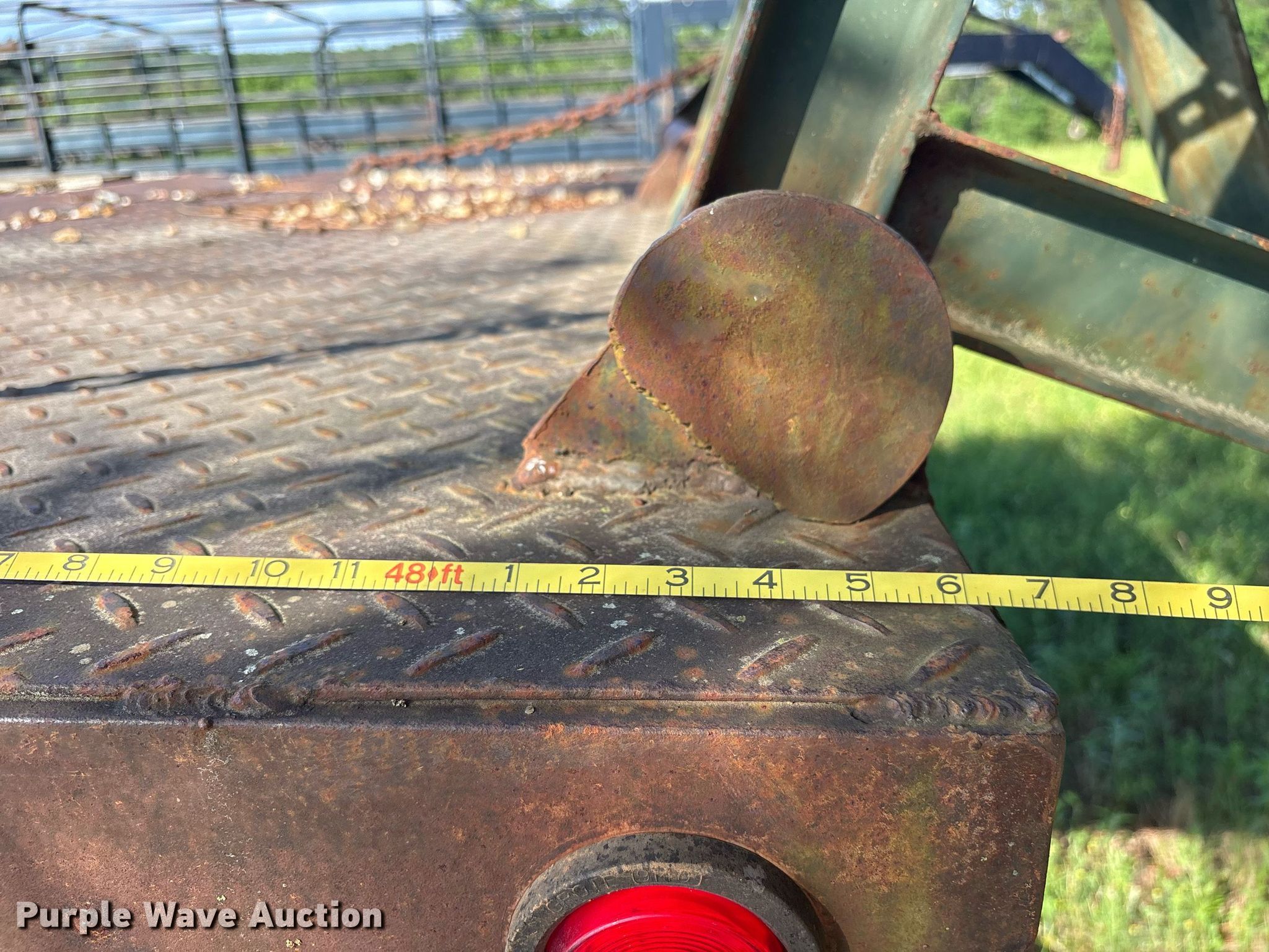 1985 Wilson flatbed trailer. VIN: 1W1Z0D3H4F3303284. Dimensions Overall: 48' 6" L x 8' W, Ramps: Manual Length: 5'. Features Deck type: Steel, Wood. Chassis Landing gear: Dual, Suspension: Spring, Brakes: Air, Axles: Tandem, GVWR: 89,800 lbs, GAWR: 19,040 lbs. Tires Steel wheels, Size: 11R24.5. Texas title. Winnsboro, TX 75494