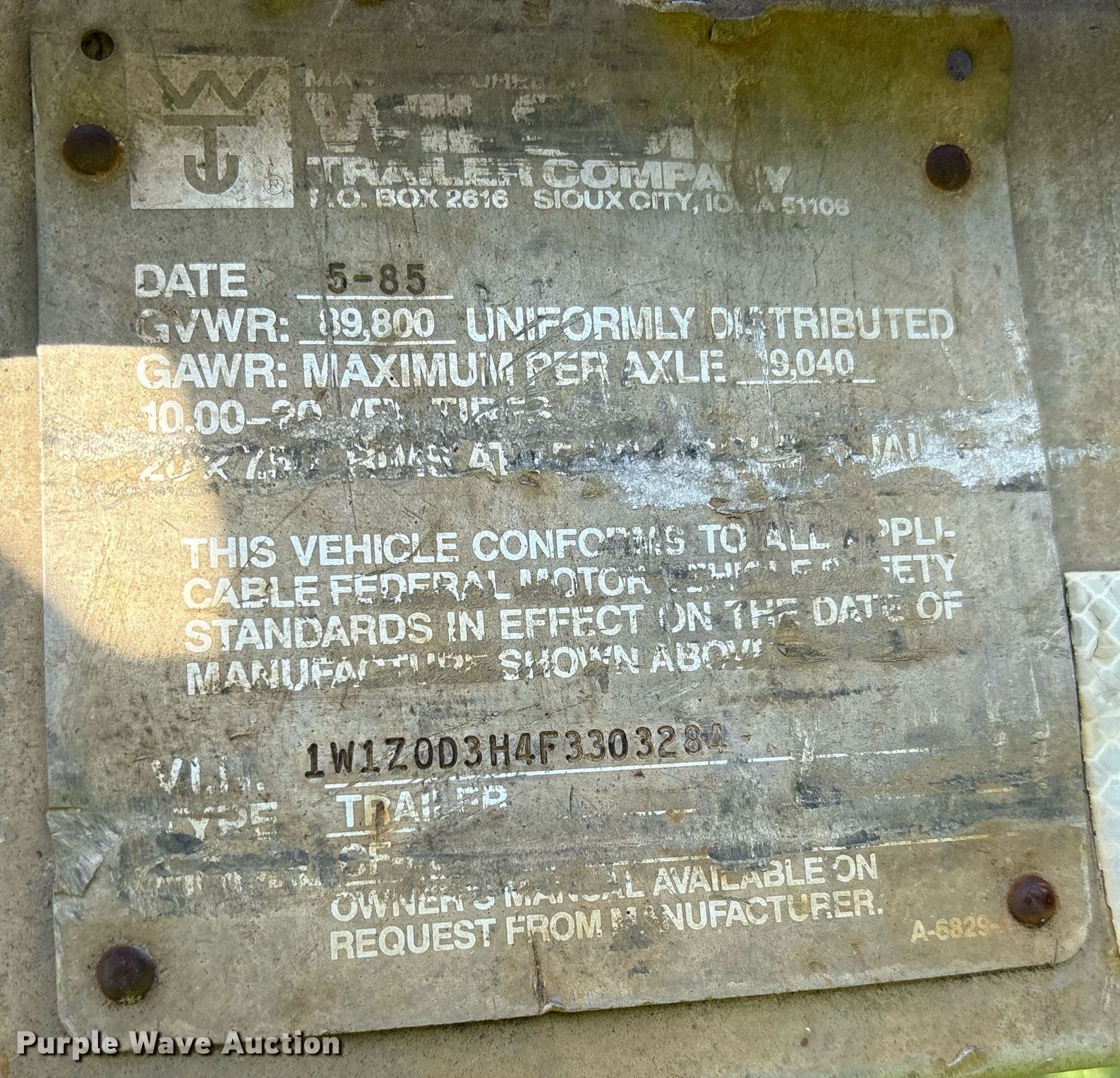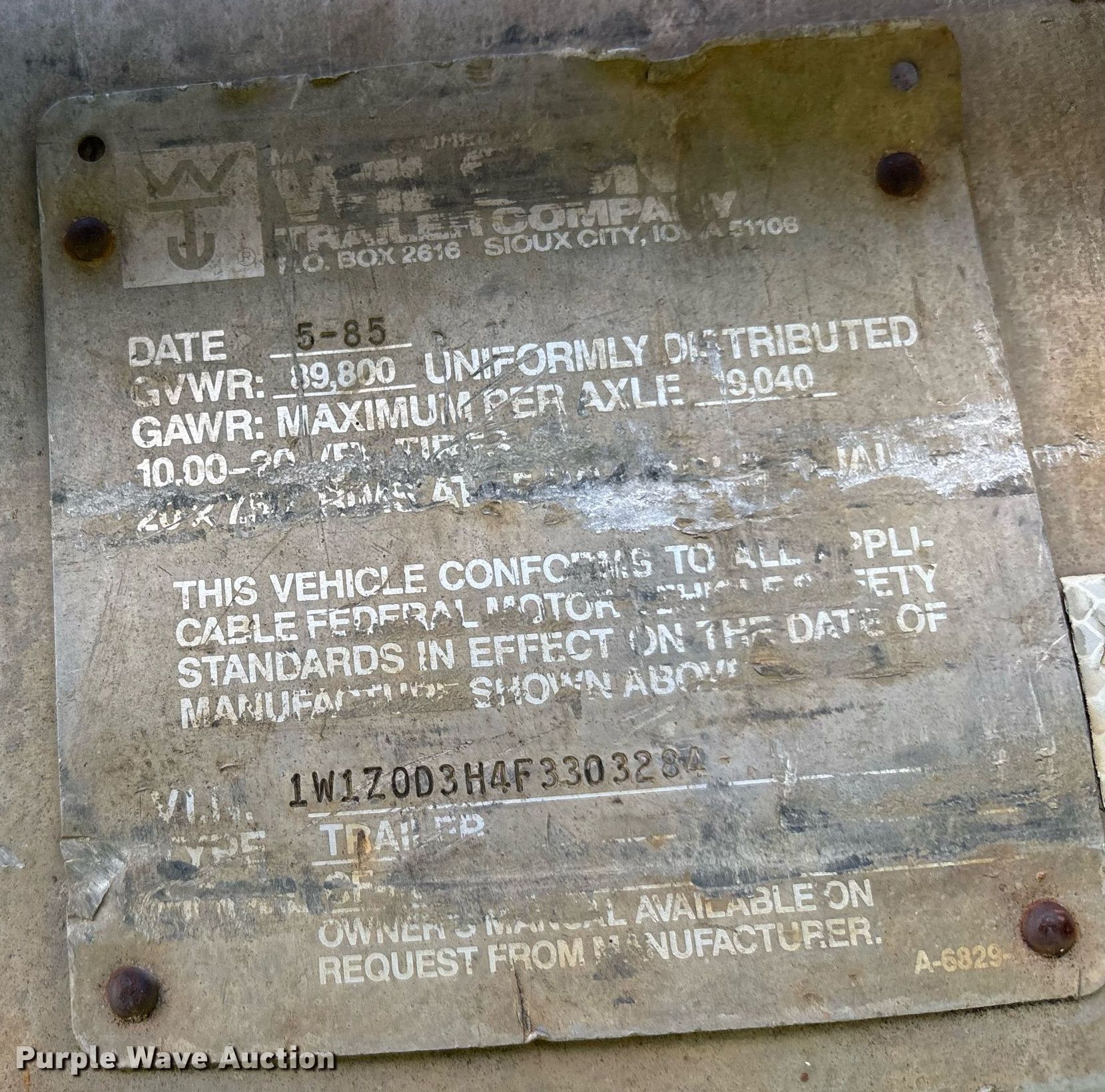 Purple Wave is selling a used Flat or Drop Deck Trailer in Texas. This item is a 1985 Wilson flatbed trailer with the following: VIN: 1W1Z0D3H4F3303284