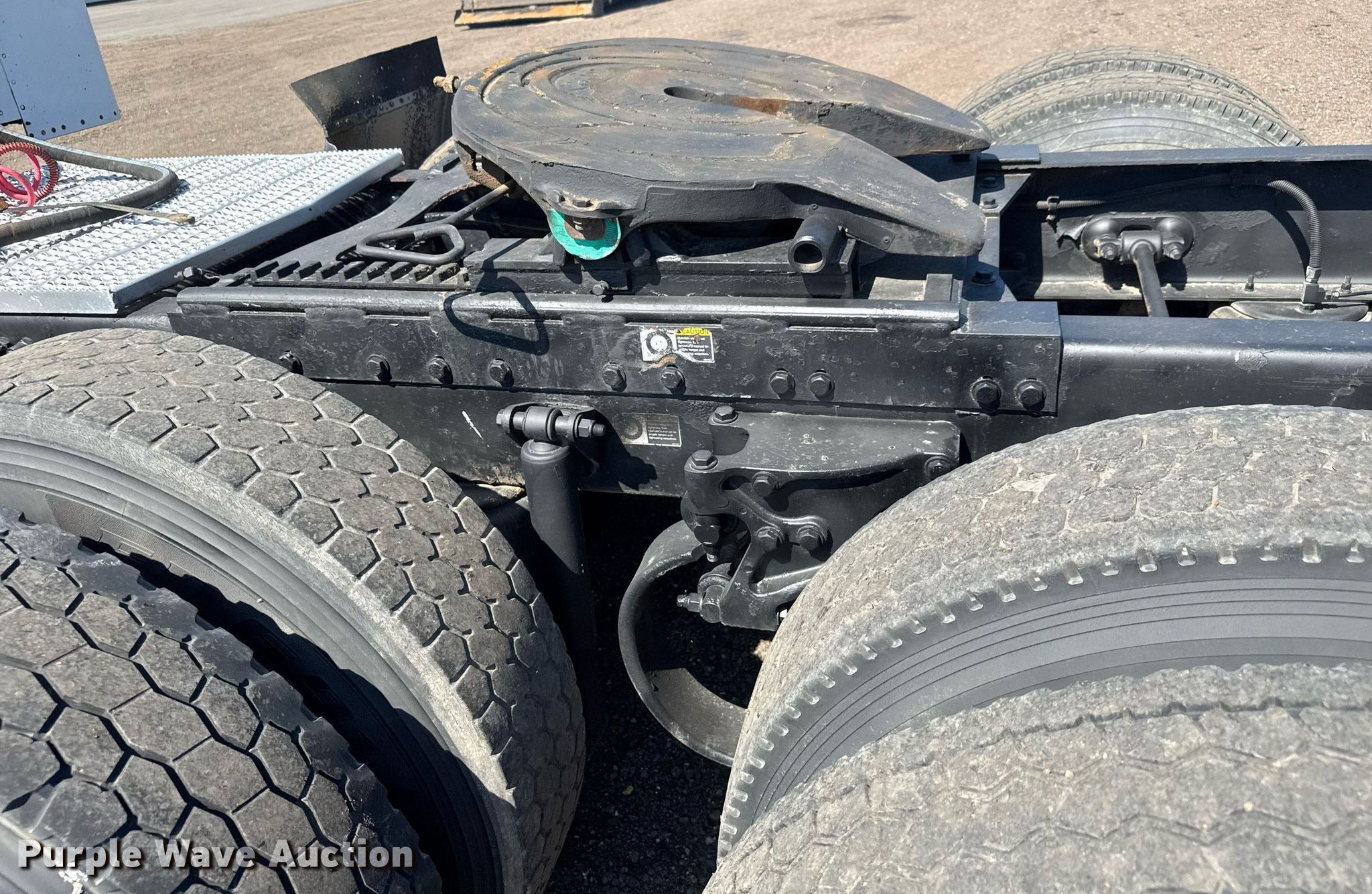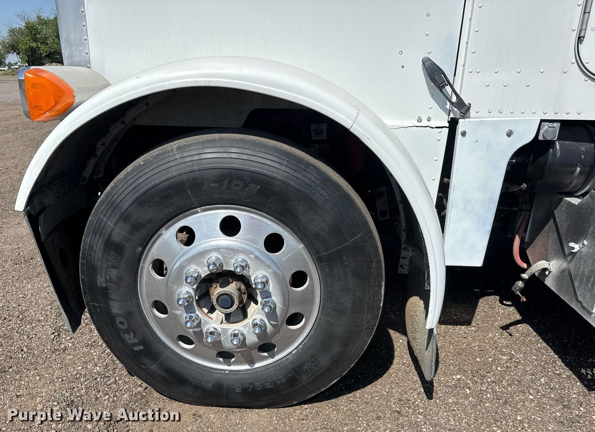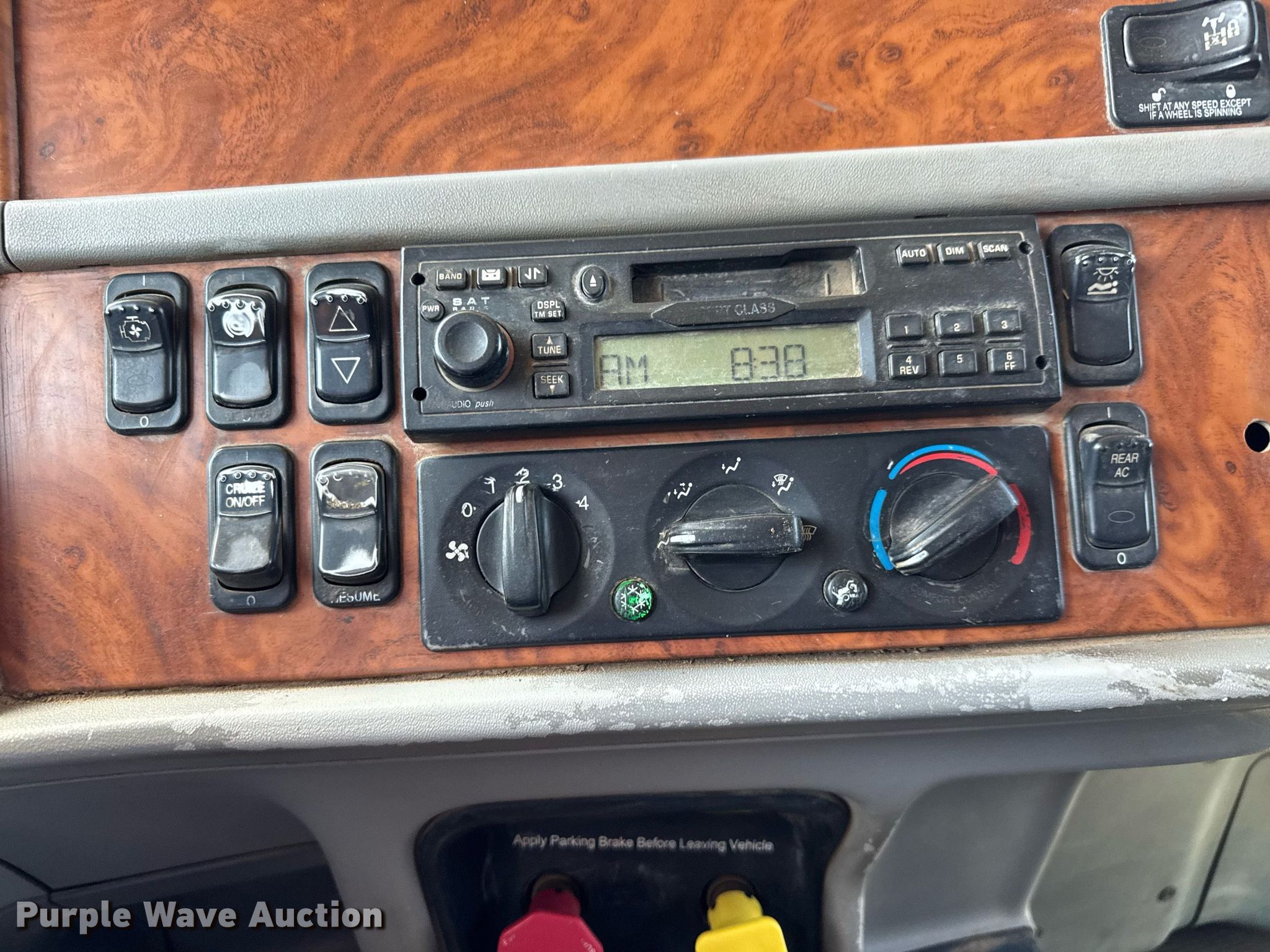 2007 Peterbilt 379 semi truck. Miles: 869,919 on odometer, Hours: 26,998 on meter, VIN: 1XP5DU9X97D689667. Engine Caterpillar C13 Acert, Displacement: 12.5L, Cylinders: 6, Fuel type: Diesel, Engine brake. Transmission Eaton Fuller, Manual, Speed: 10. Chassis Axles: Tandem, Differential lock: Inter-axle, Suspension: Air Dump valves, Brakes: Air, PTO, Wet kit, GVWR: 48,000 lbs FAWR: 12,000 lbs, IAWR: 18,000 lbs, Lift axle GAWR: 18,000 lbs. Interior AC, Heat, Heated mirrors, Power windows, Cruise control, Air ride cab, Sleeper Sleeper length: 48", Beds: Single, Rear climate control. Features Deck plate: Aluminum, Fifth wheel type: Air operated, Sliding, Fuel tank: Single. Tires Size: 11R24.5. Notes Windshield chipped or cracked. Kansas title. Title distribution may be delayed up to 14 days from verification of funds. Venture Corp. Great Bend, KS 67530