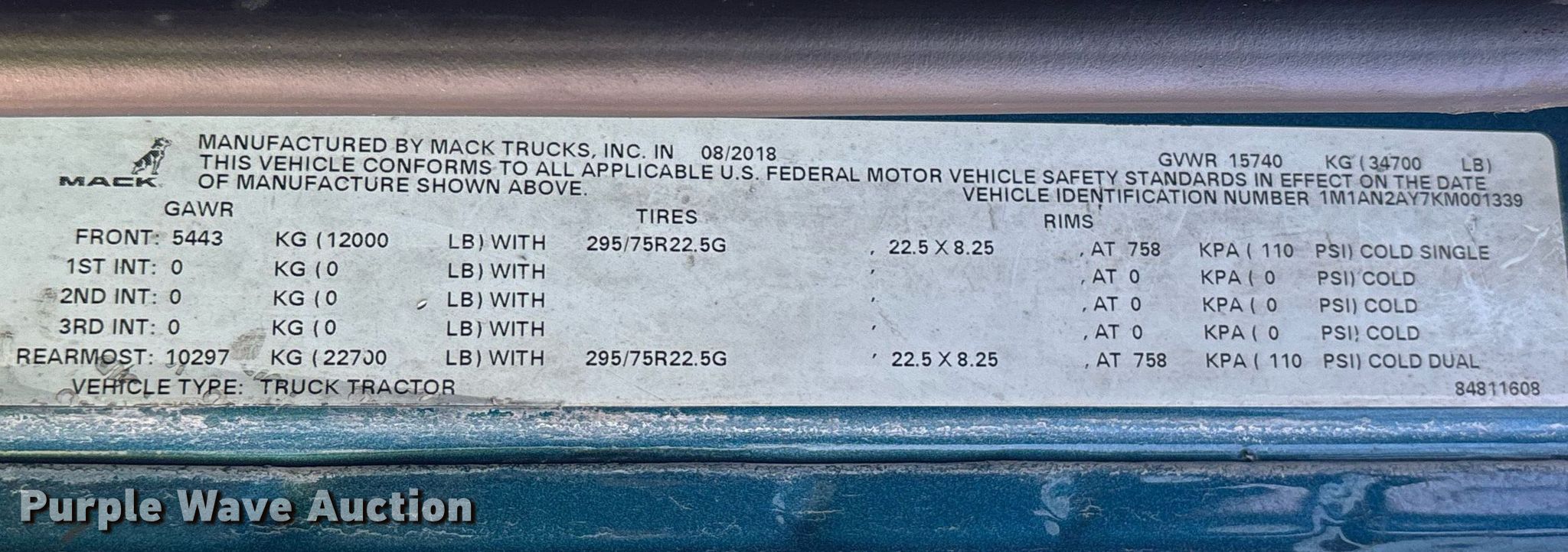 - VIN: 1M1AN2AY7KM001339