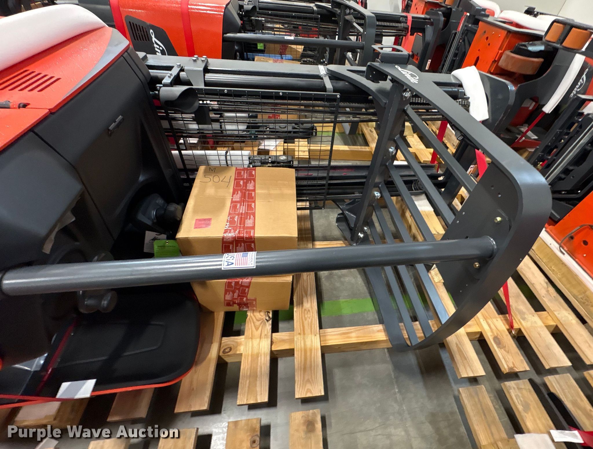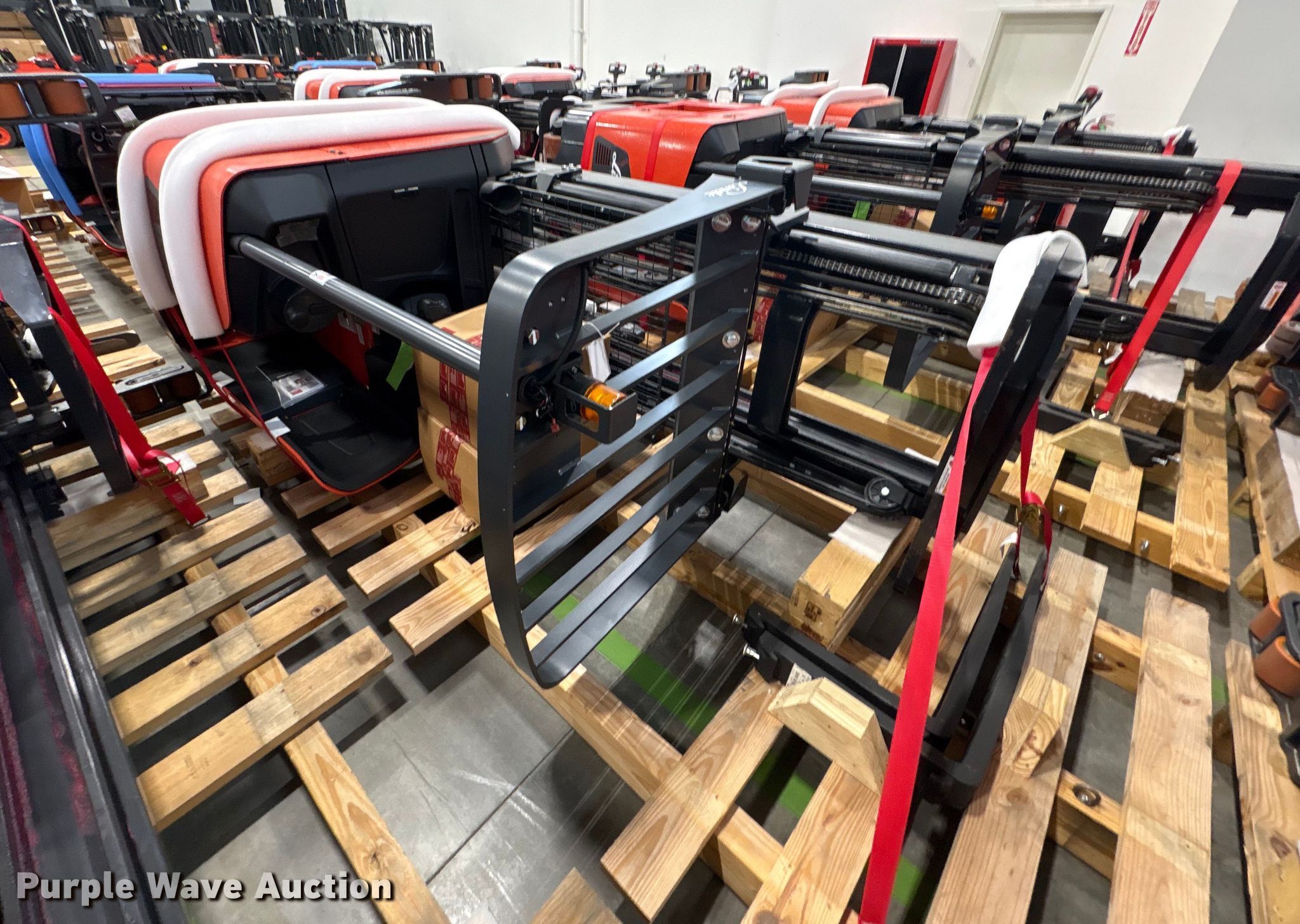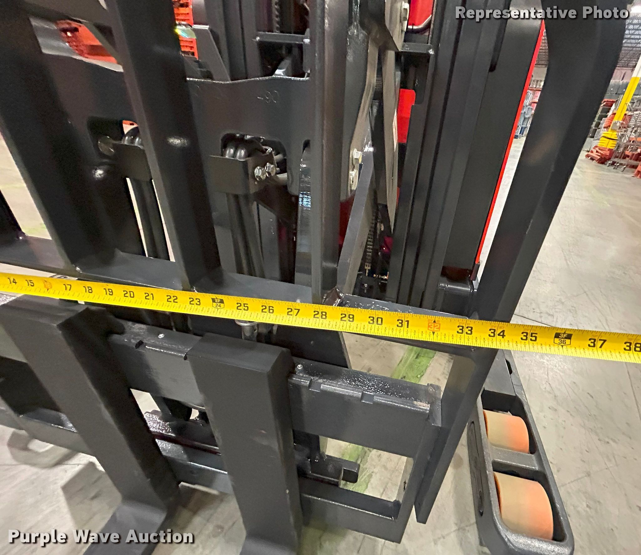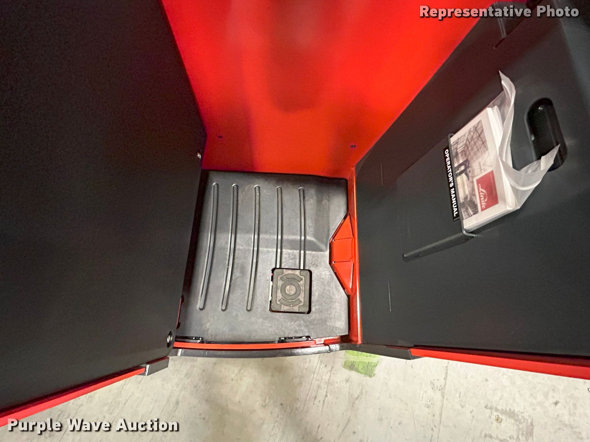 2023 Linde R17SX reach truck. Serial: C25195M00502. Electric Motor Volts: 36, Charger: Tricom Opps Phase: Three, Amps: 200, Battery: Crown 18-125LM-13 Serial: 06630A4, Amp hour: 750. Transmission Electric drive. Operators station OROPS. Features Maximum lift capacity: 3,500 lbs, Maximum lift height: 270", Collapsed mast height: 119", Mast stages: 3, Side shift, Mast tilt, Fork length: 42". Tires Solid, Non-marking. Notes Unused, 3 year or 6,000 hour warranty valid after predelivery inspection by licensed Linde dealer is complete. Fees apply. Representative photos. Prologis - Linde Warranty Available. Lewisville, TX 75067