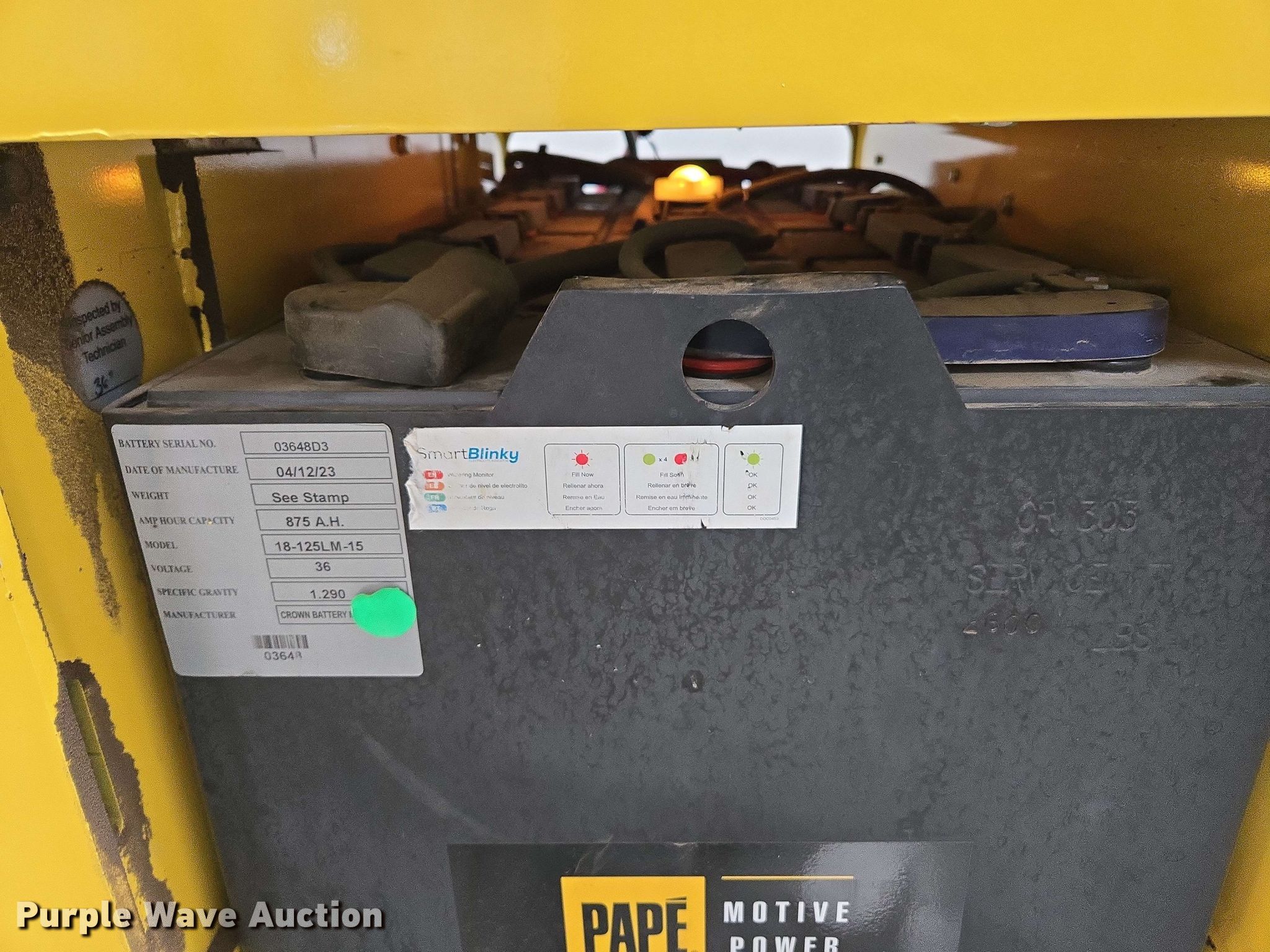 2023 Hyster E35HSD3-18 forklift. Hours: 1 on meter. Electric motor Volts: 36, Charger: Ecotec Access 13/36 /C, Battery: 18-125LM-15. Transmission Electric drive. Operators station OROPS. Features Maximum lift capacity: 3,350 lbs, Maximum lift height: 198", Collapsed mast height: 88", Mast stages: 3, Side shift, Mast tilt, Fork length: 42". Tires Front: 18x7x12 1/8, Solid. Notes Unused. Prologis. Moreno Valley, CA 92553
