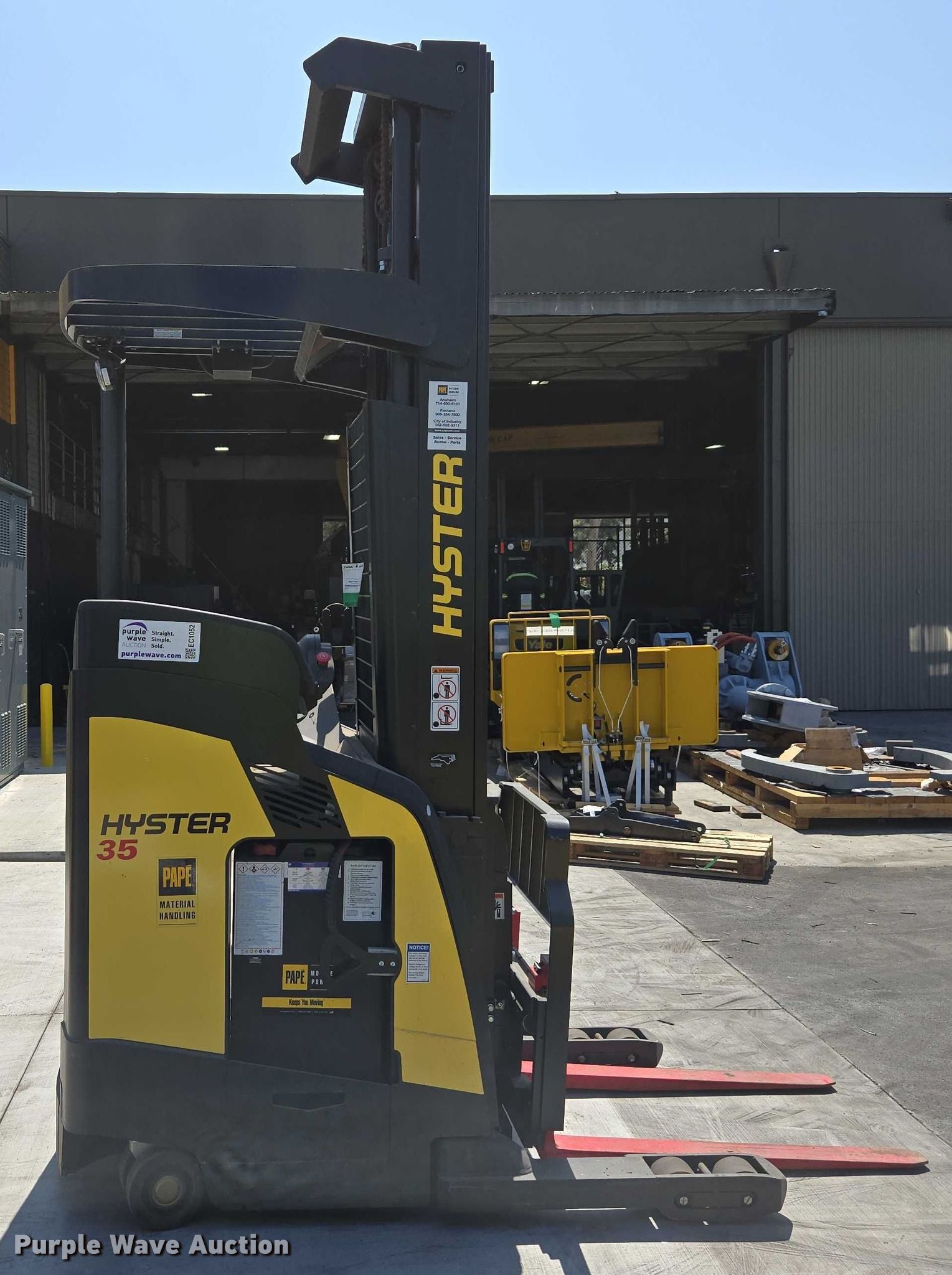 Purple Wave is selling a used Warehouse Forklift in California. This item is a 2023 Hyster N35ZR3-16.25 reach truck with the following: Hours: 9 on meter, Serial: E264N03912X