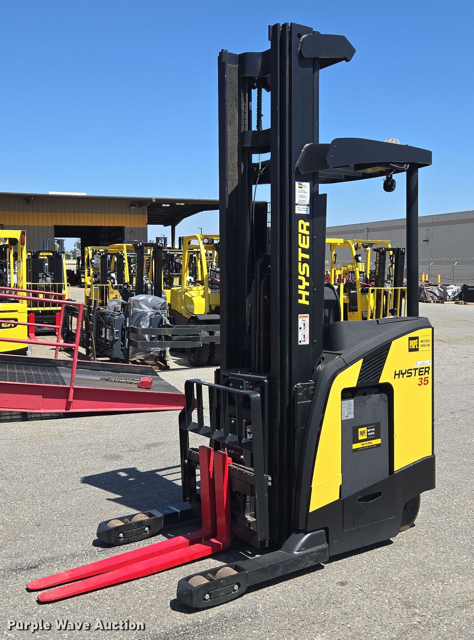 Purple Wave is selling a used Warehouse Forklift in California. This item is a 2023 Hyster N35ZR3-16.25 reach truck with the following: Hours: 0 on meter, Serial: E264N03905X