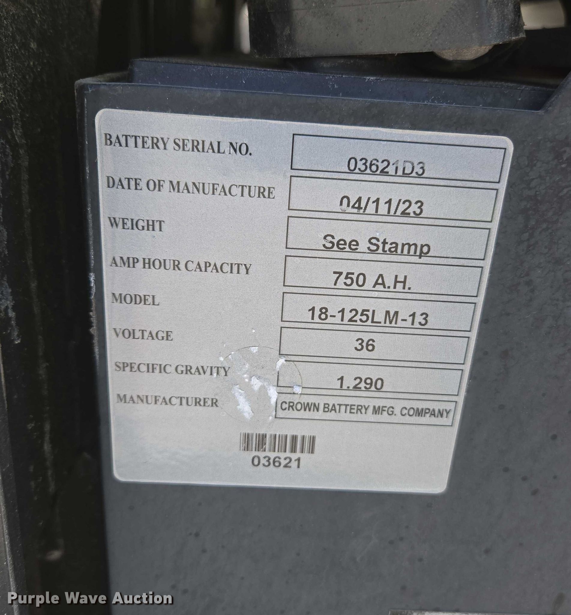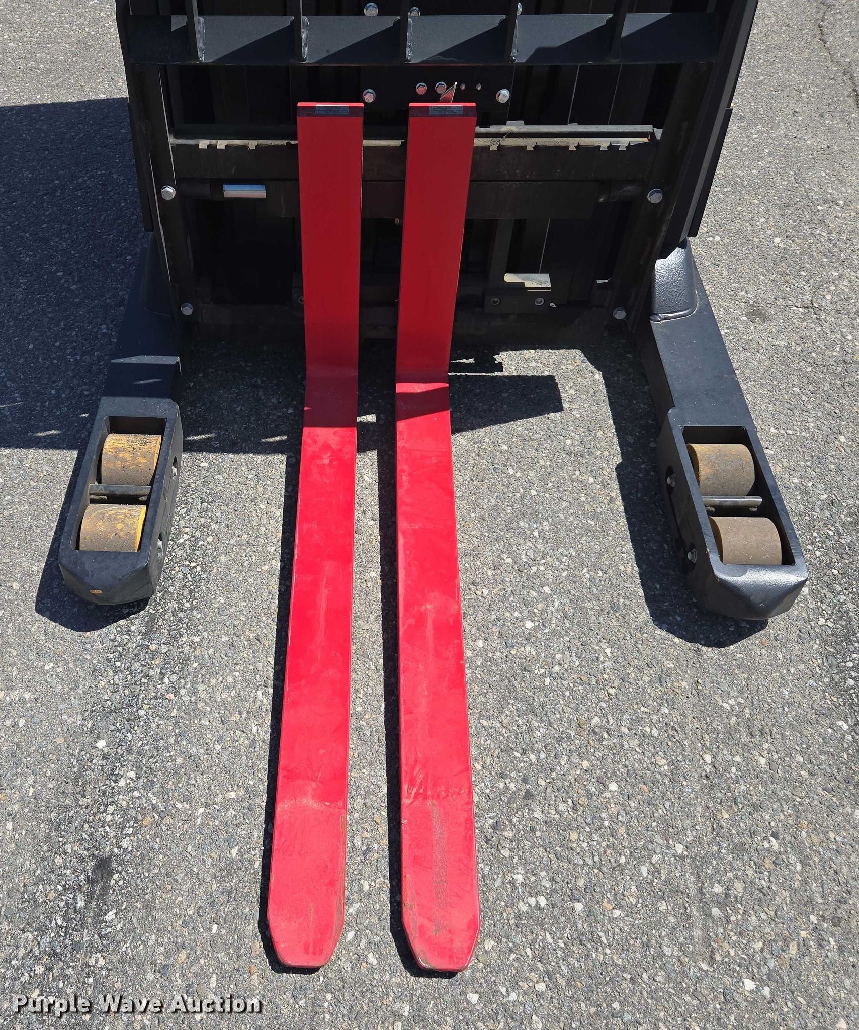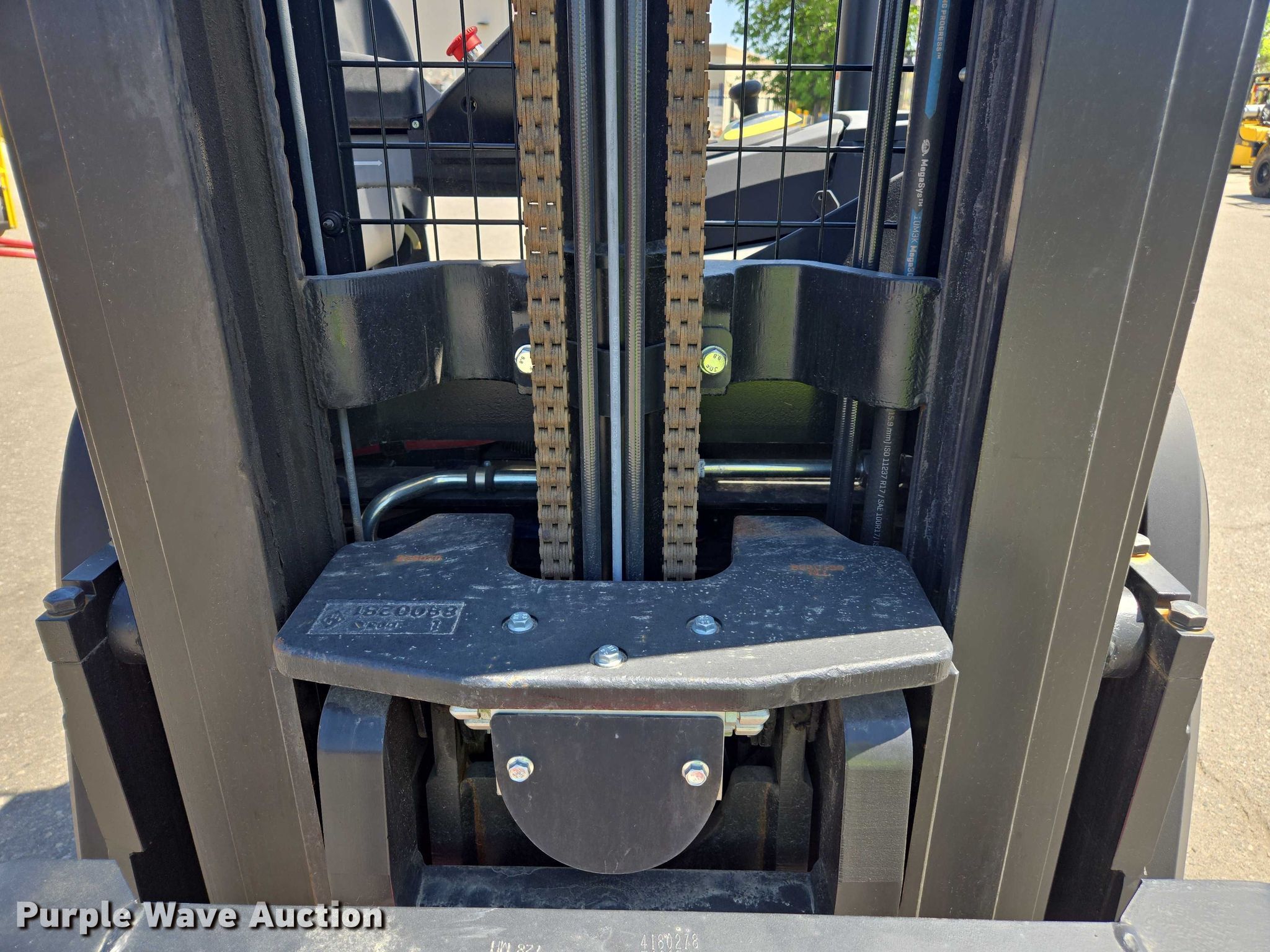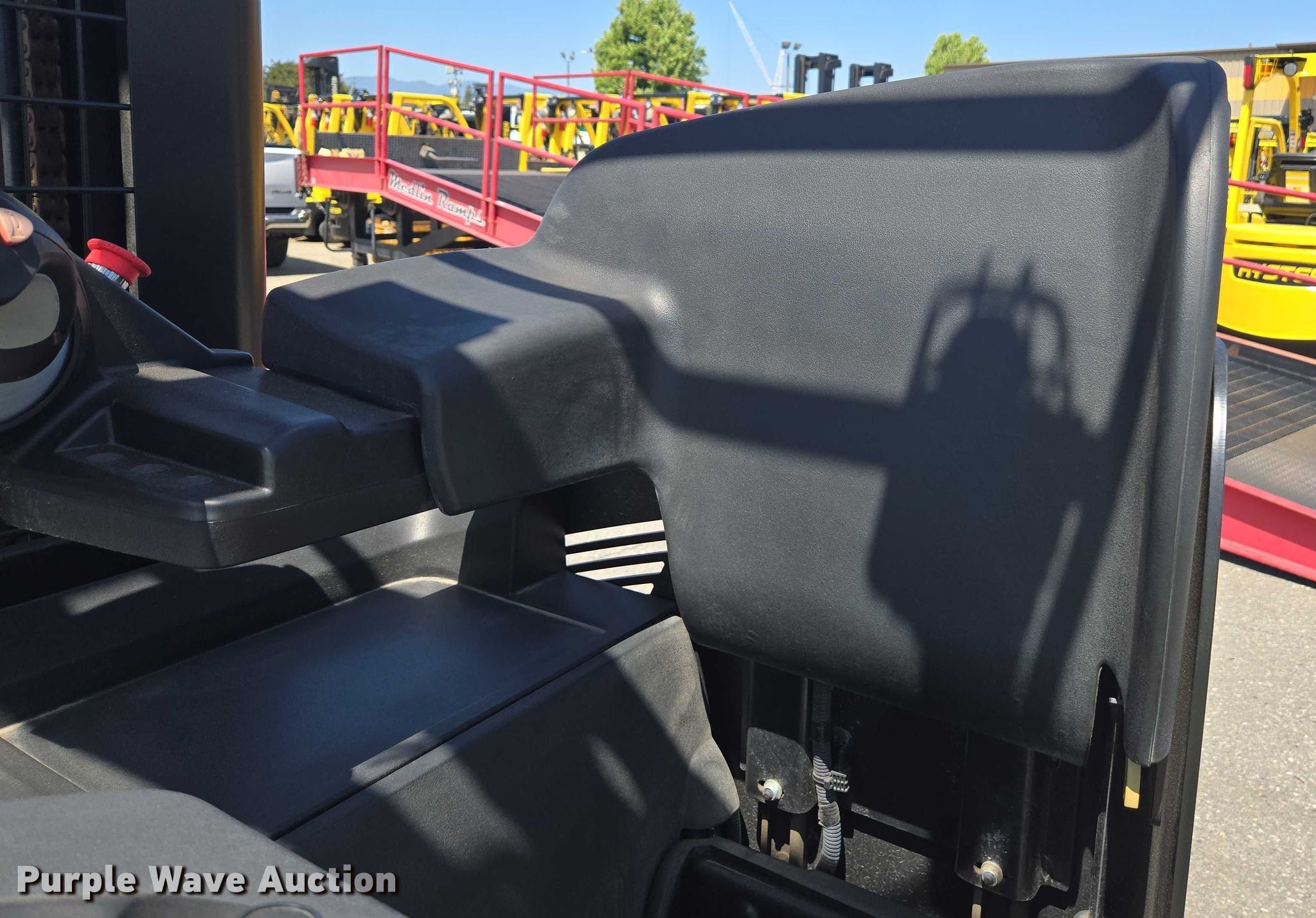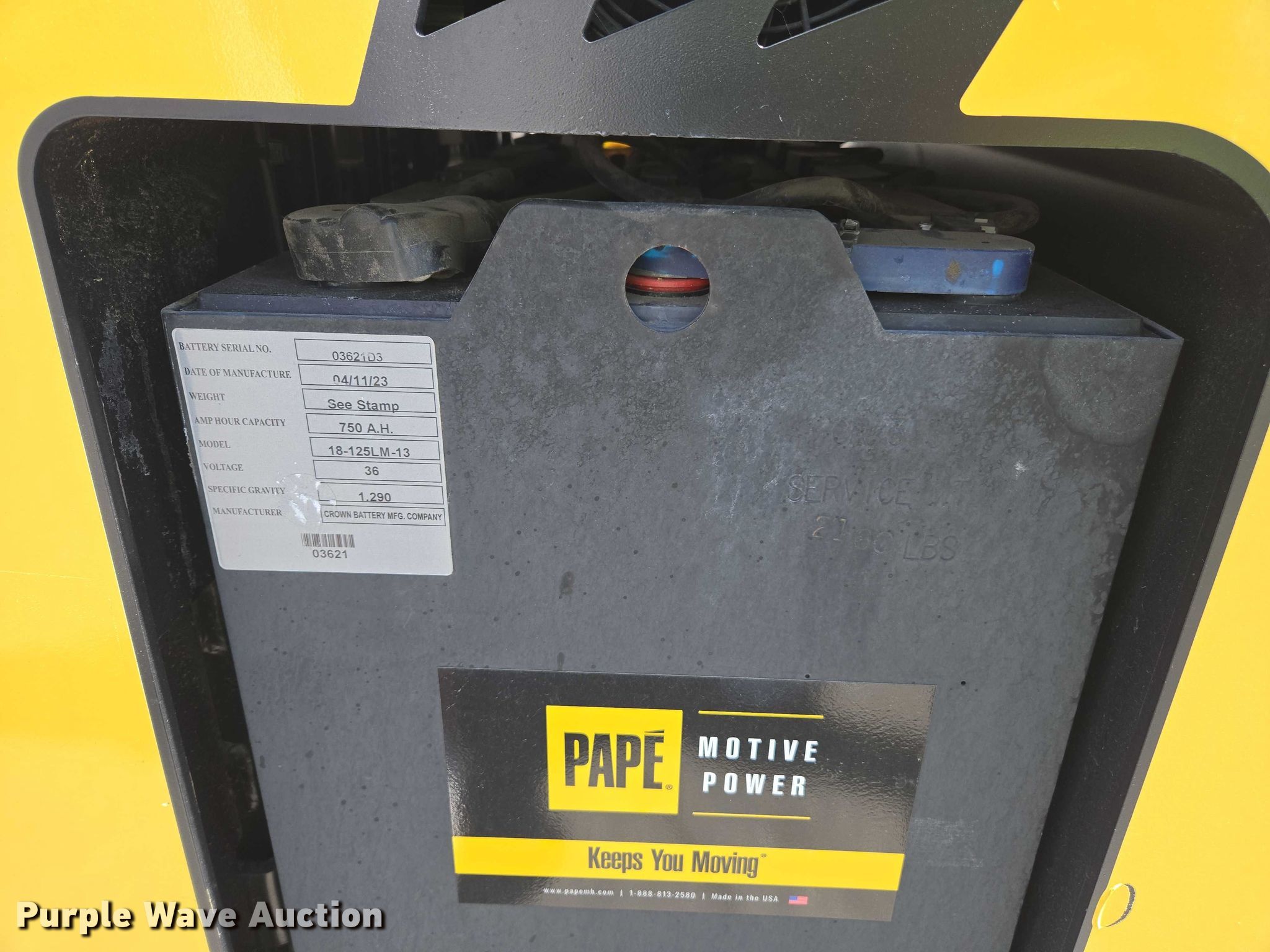 2023 Hyster N35ZR3-16.25 reach truck. Hours: 0 on meter, Serial: E264N03905X. Electric motor Volts: 36, Charger: Ecotec Access 13/36 /C, Battery: H2Go 18-125LM-13. Transmission Electric drive. Operators station OROPS. Features Maximum lift capacity: 3,500 lbs, Maximum lift height: 272", Collapsed mast height: 119", Basearm clearance Inner: 34", Outer: 45", Mast stages: 3, Mast tilt, Reach / retract, Fork length: 42". Tires Solid. Prologis. Fontana, CA 92335
