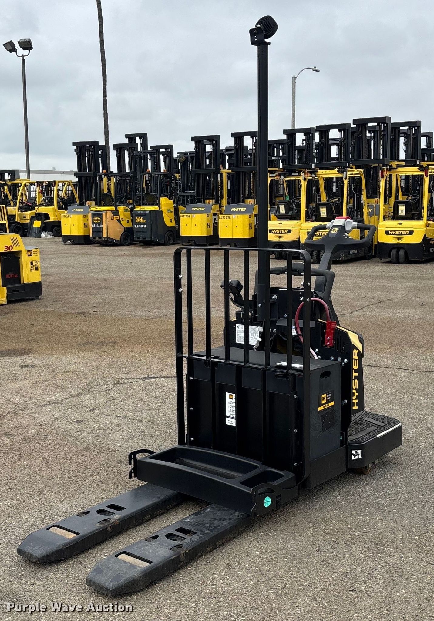 2023 Hyster B60ZAC2 pallet jack. Hours: 0 on meter, Serial: E230C01946X. Electric motor Volts: 24, Charger: Ecotec Access 13/36 /C, Battery: H2Go 18-85LM-13. Transmission Electric drive. Features Maximum lift capacity: 6,000 lbs, Fork length: 48". Notes Unused. Prologis. Fontana, CA 92335