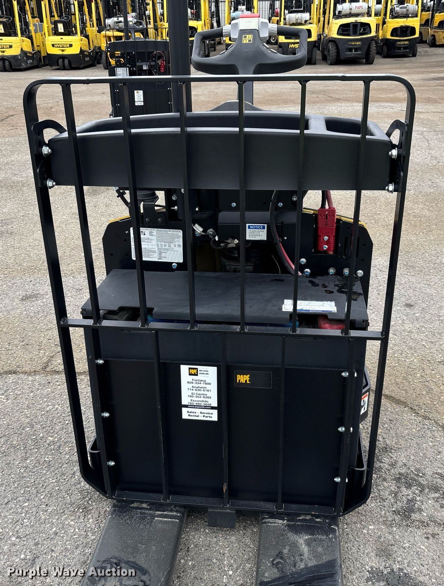2023 Hyster B60ZAC2 pallet jack. Hours: 0 on meter, Serial: E230C01965X. Electric motor Volts: 24, Charger: Ecotec Access 13/36 /C, Battery: H2Go 18-85LM-13. Transmission Electric drive. Features Maximum lift capacity: 6,000 lbs, Fork length: 48". Notes Unused. Prologis. Fontana, CA 92335