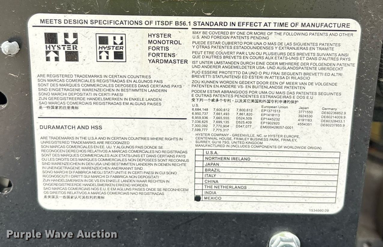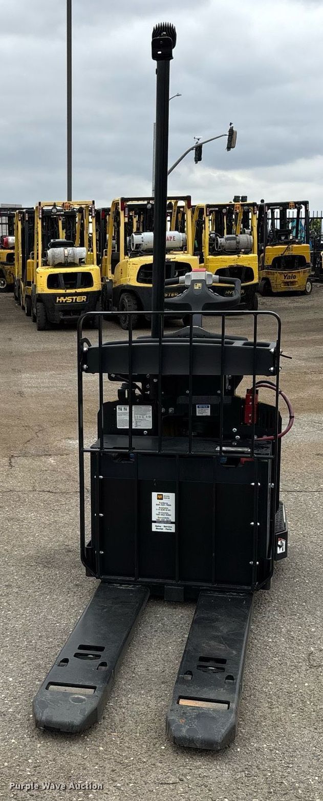 2023 Hyster B60ZAC2 pallet jack. Hours: 0 on meter, Serial: E230C01964X. Electric motor Volts: 24, Charger: Ecotec Access 13/36 /C, Battery: H2Go 18-85LM-13. Transmission Electric drive. Features Maximum lift capacity: 6,000 lbs, Fork length: 48". Notes Unused. Prologis. Fontana, CA 92335