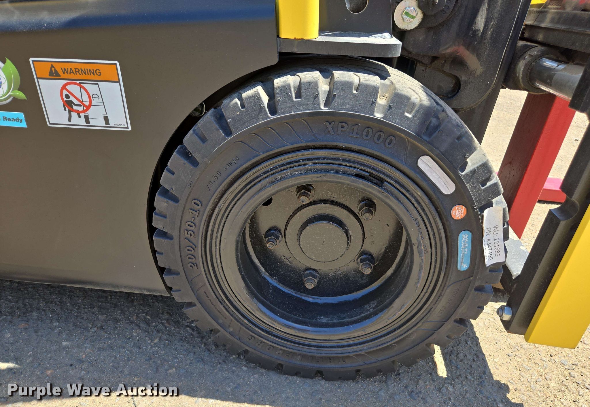 2023 Hyster J40XNT forklift. Hours: 4 on meter, Serial: K160N12903X. Electric motor Volts: 36, Charger: Ecotec Access 13/36 /C, Battery: H2Go 18-85LM-13. Transmission Electric drive. Operators station OROPS. Features Maximum lift capacity: 3,700 lbs, Maximum lift height: 187", Collapsed mast height: 82", Mast stages: 3, Side shift, Mast tilt, Fork length: 42". Tires Front: 200/50-10, Rear: 15x4 1/2-8. Notes Unused. Prologis. Fontana, CA 92335
