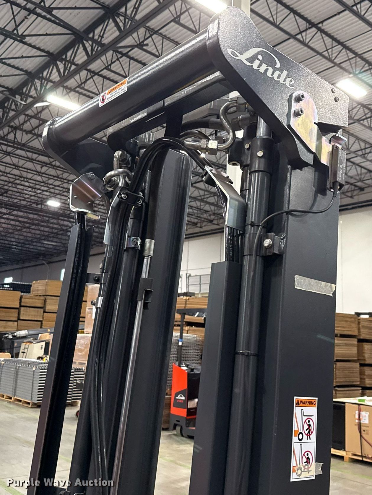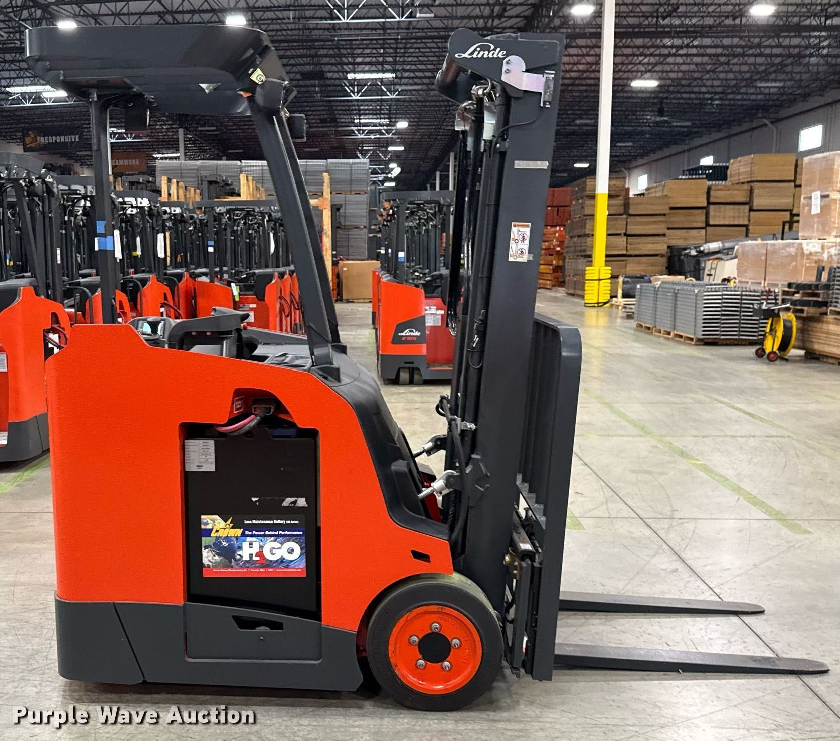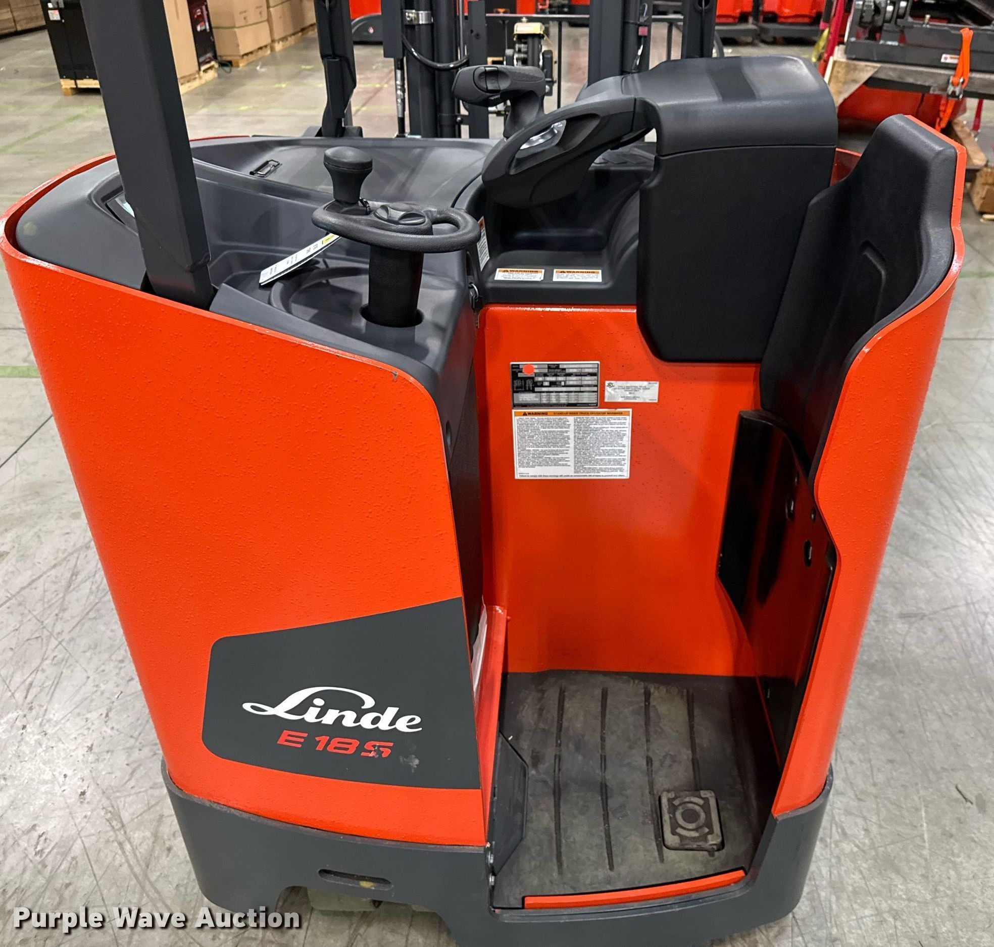 Purple Wave is selling a used Warehouse Forklift in Texas. This item is a 2023 Linde E18S forklift with the following: Hours: 5 on meter, Serial: A11346M00193