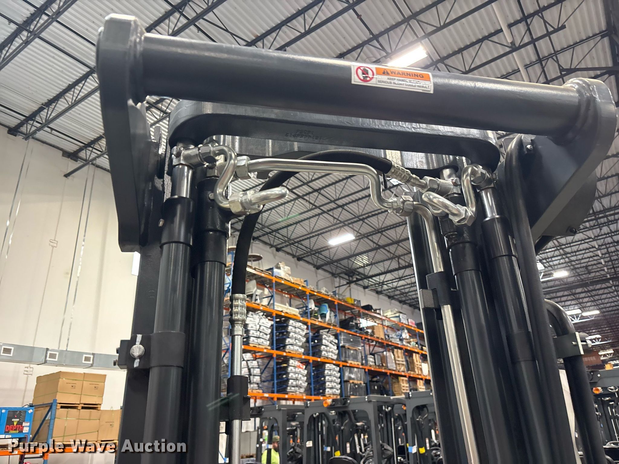 2023 Linde E18 forklift. Hours: 1 on meter, Serial: A1Y346M00506. Electric Motor Volts: 48, Phase: Three, Charger: Viking Ferro Phase: Three, Battery: Viking Intel Amp hour: 595. Transmission Electric drive. Operators station OROPS. Features Maximum lift capacity: 3,250 lbs, Maximum lift height: 188", Collapsed mast height: 84", Mast stages: 3, Side shift, Mast tilt, Fork length: 42". Tires Front: 18x7x12 1/8, Rear: 15x5x11 1/4, Solid. Notes 3 year or 6,000 hour warranty valid after predelivery inspection by licensed Linde dealer is complete Fees apply. Prologis - Linde Warranty Available. Lewisville, TX 75067