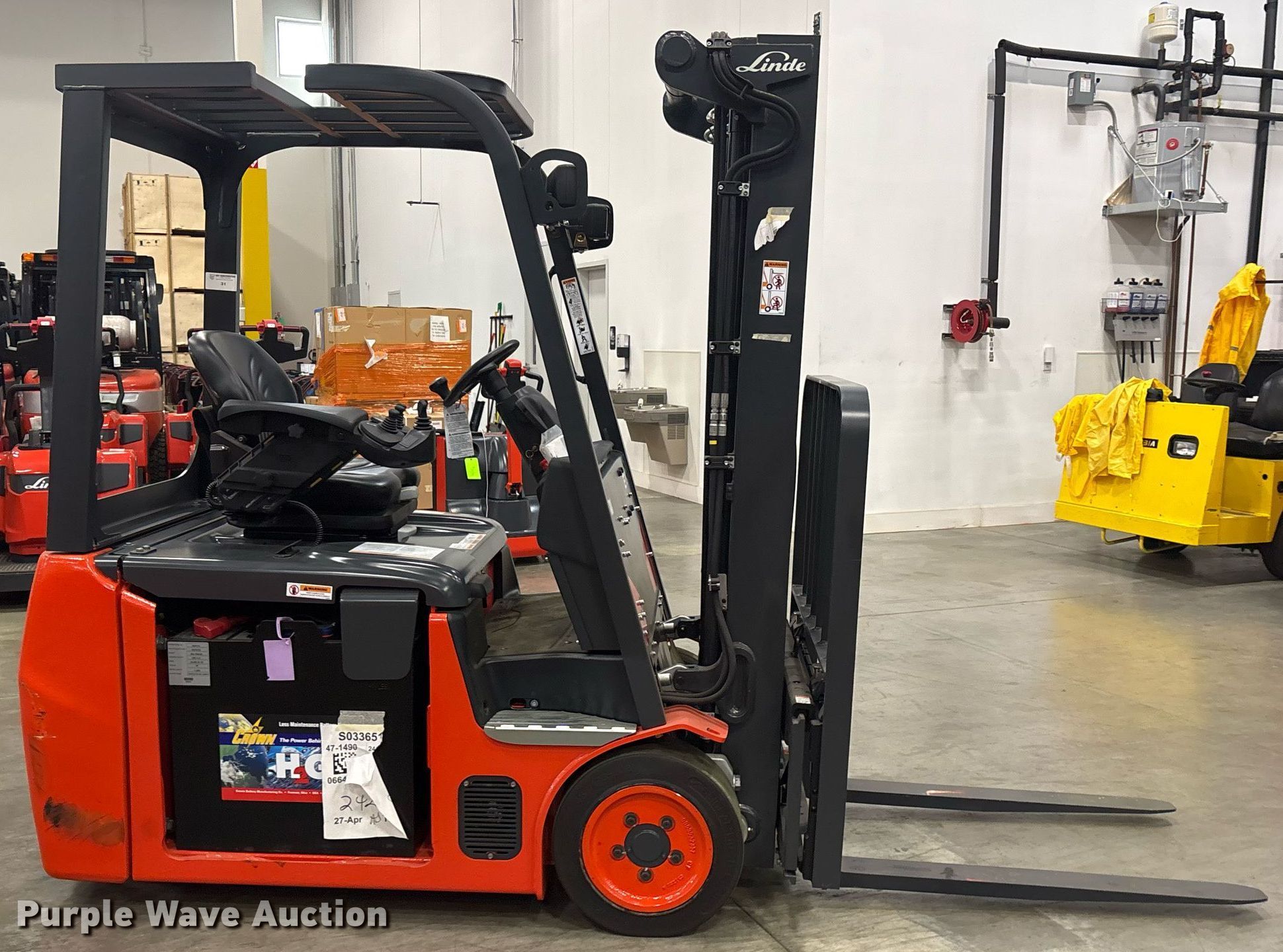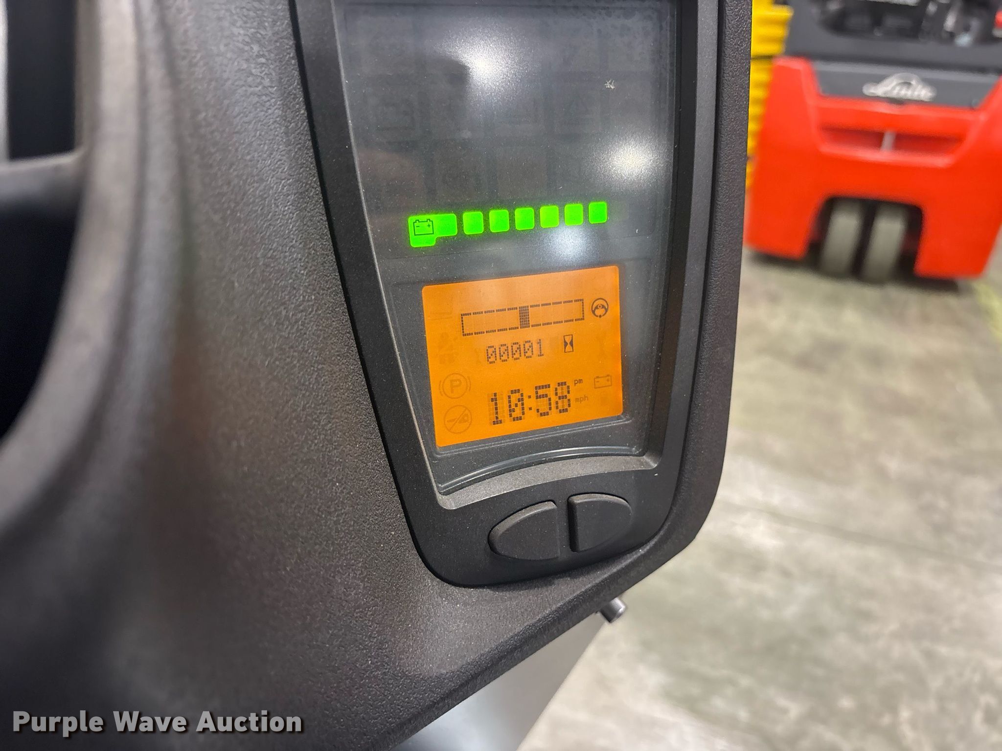 Purple Wave is selling a used Warehouse Forklift in Texas. This item is a 2023 Linde E18 forklift with the following: Hours: 1 on meter, Serial: A1Y346M00499