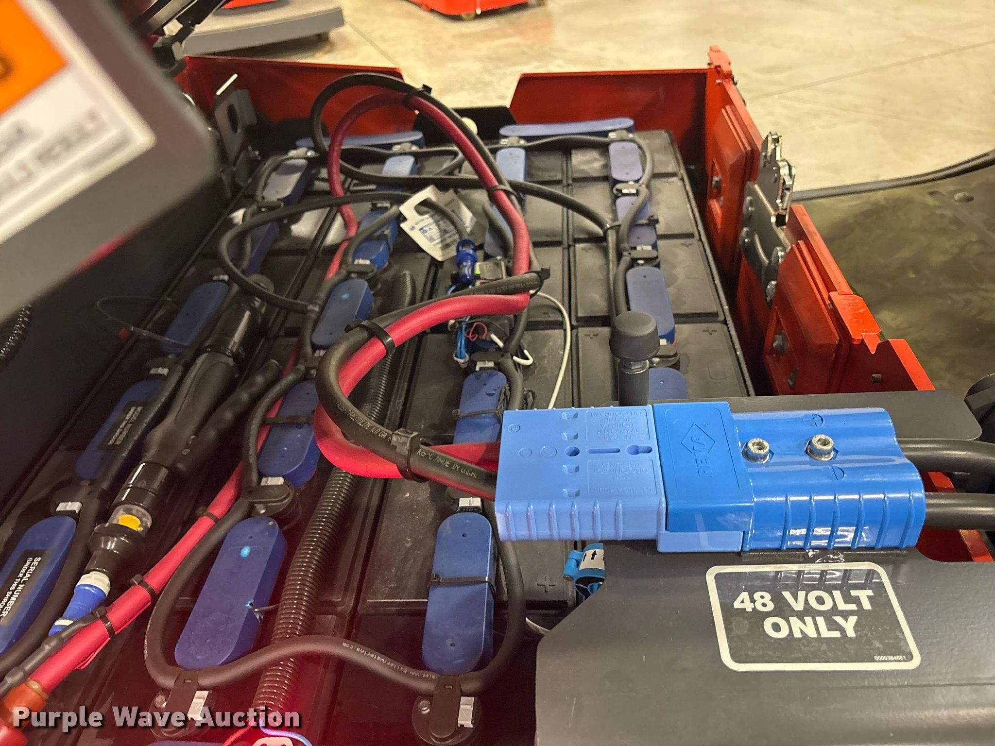 2023 Linde E18 forklift. Hours: 1 on meter, Serial: A1Y346M00499. Electric Motor Volts: 48, Phase: Three, Charger: Viking Ferro Phase: Three, Battery: Viking Intel Amp hour: 595. Transmission Electric drive. Operators station OROPS. Features Maximum lift capacity: 3,250 lbs, Maximum lift height: 188", Collapsed mast height: 84", Mast stages: 3, Side shift, Mast tilt, Fork length: 42". Tires Front: 18x7x12 1/8, Rear: 15x5x11 1/4, Solid. Notes 3 year or 6,000 hour warranty valid after predelivery inspection by licensed Linde dealer is complete Fees apply. Prologis - Linde Warranty Available. Lewisville, TX 75067