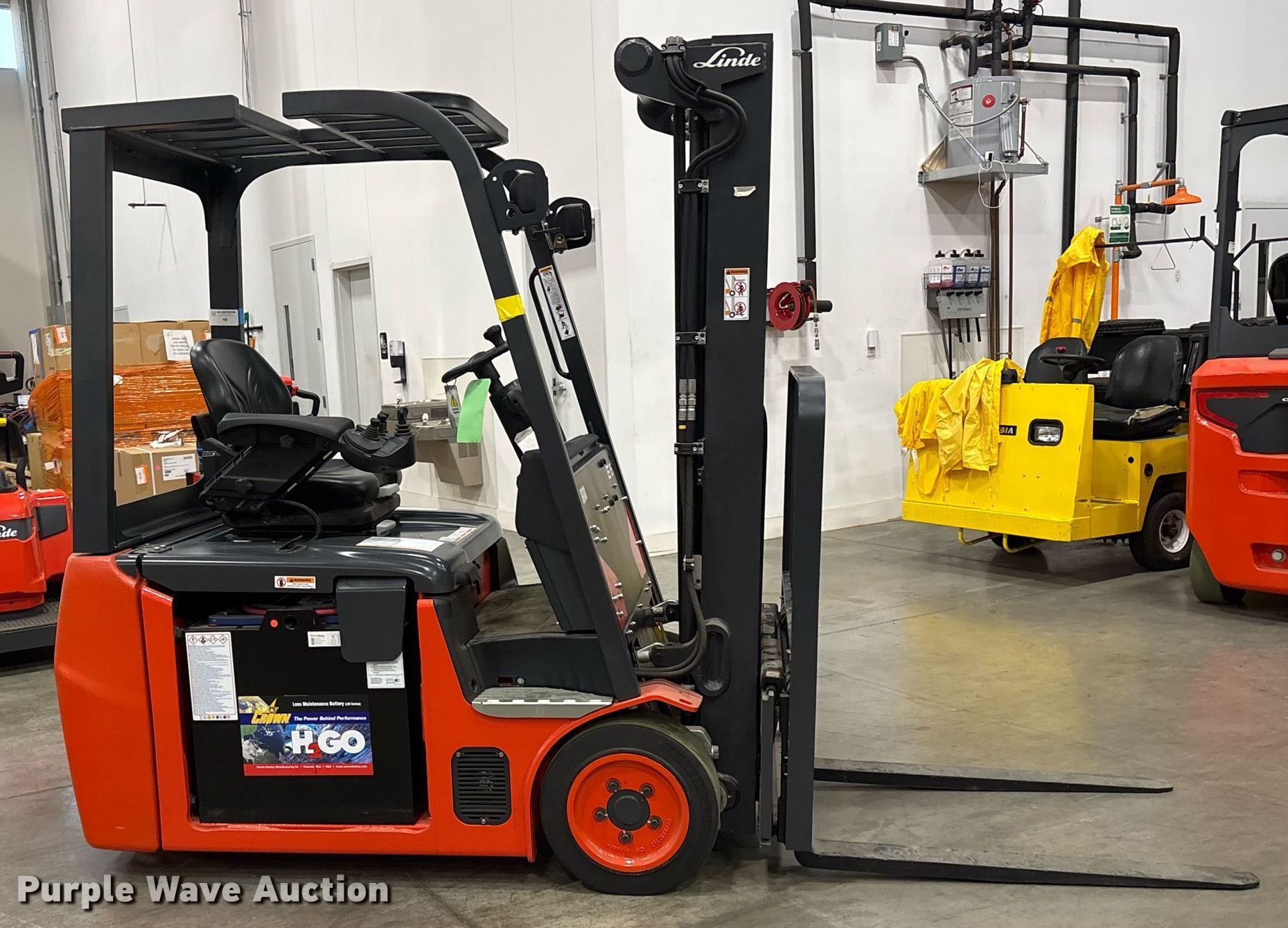 Purple Wave is selling a used Warehouse Forklift in Texas. This item is a 2023 Linde E18 forklift with the following: Hours: 1 on meter, Serial: A1Y346M00537