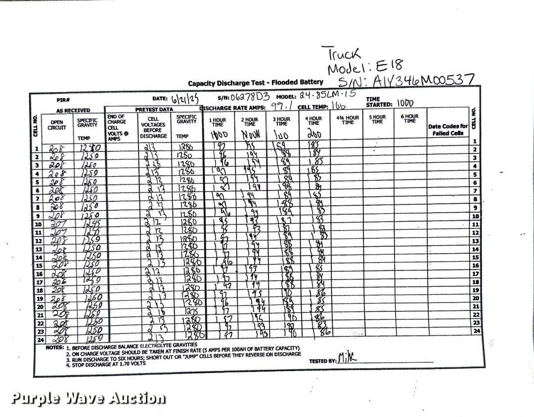 2023 Linde E18 forklift. Hours: 1 on meter, Serial: A1Y346M00537. Electric Motor Volts: 48, Phase: Three, Charger: Viking Ferro Phase: Three, Battery: Viking Intel Amp hour: 595. Transmission Electric drive. Operators station OROPS. Features Maximum lift capacity: 3,250 lbs, Maximum lift height: 188", Collapsed mast height: 84", Mast stages: 3, Side shift, Mast tilt, Fork length: 42". Tires Front: 18x7x12 1/8, Rear: 15x5x10 1/4, Solid. Notes 3 year or 6,000 hour warranty valid after predelivery inspection by licensed Linde dealer is complete Fees apply. Prologis - Linde Warranty Available. Lewisville, TX 75067