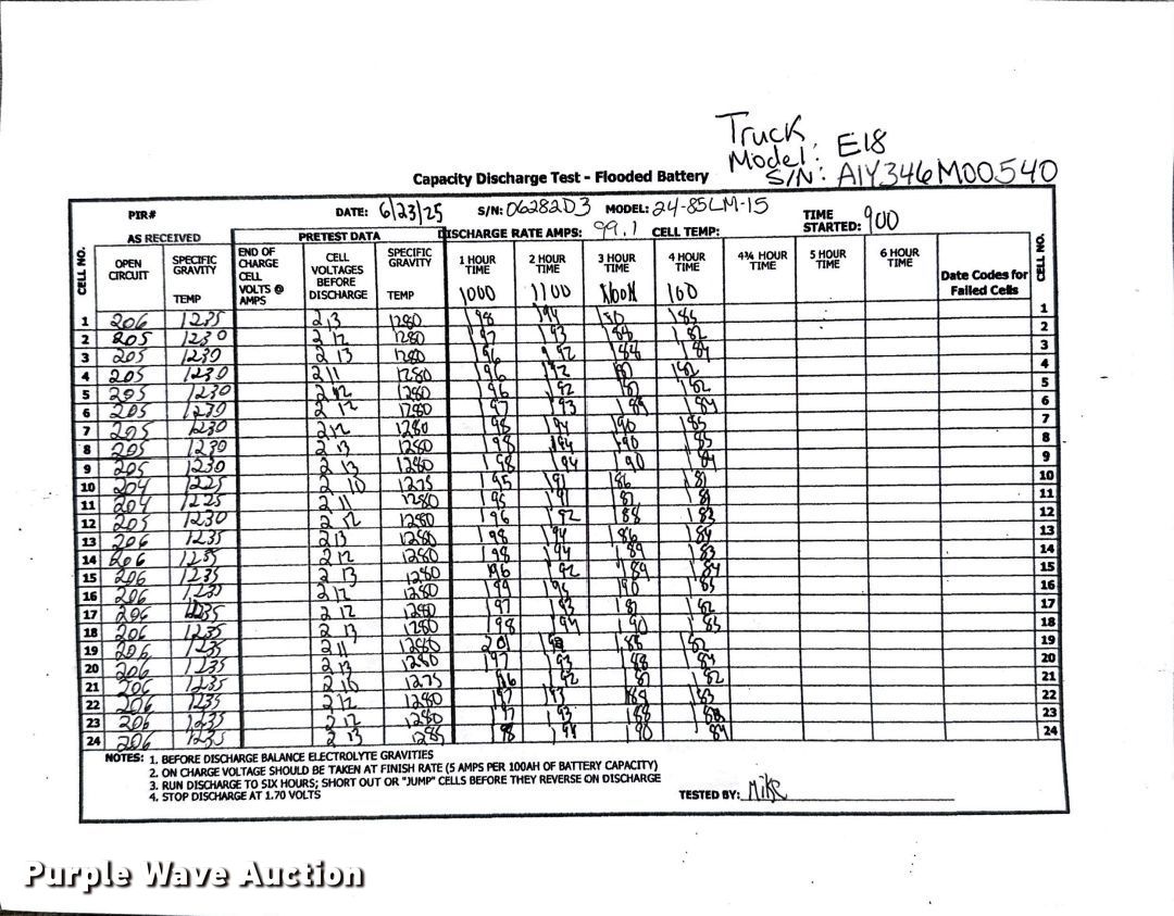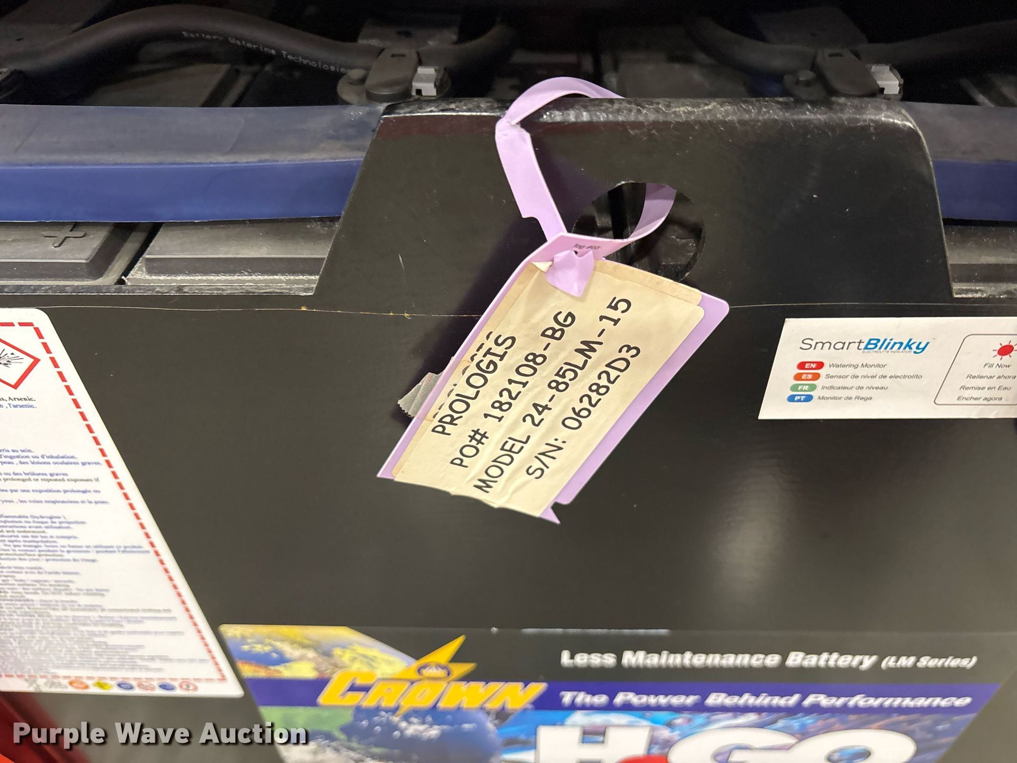 2023 Linde E18 forklift. Hours: 1 on meter, Serial: A1Y346M00540. Electric Motor Volts: 48, Phase: Three, Charger: Viking Ferro Phase: Three, Battery: Viking Intel Amp hour: 595. Transmission Electric drive. Operators station OROPS. Features Maximum lift capacity: 3,250 lbs, Maximum lift height: 188", Collapsed mast height: 84", Mast stages: 3, Side shift, Mast tilt, Fork length: 42". Tires Front: 18x7x12 1/8, Rear: 15x5x11 1/4, Solid. Notes 3 year or 6,000 hour warranty valid after predelivery inspection by licensed Linde dealer is complete Fees apply. Prologis - Linde Warranty Available. Lewisville, TX 75067