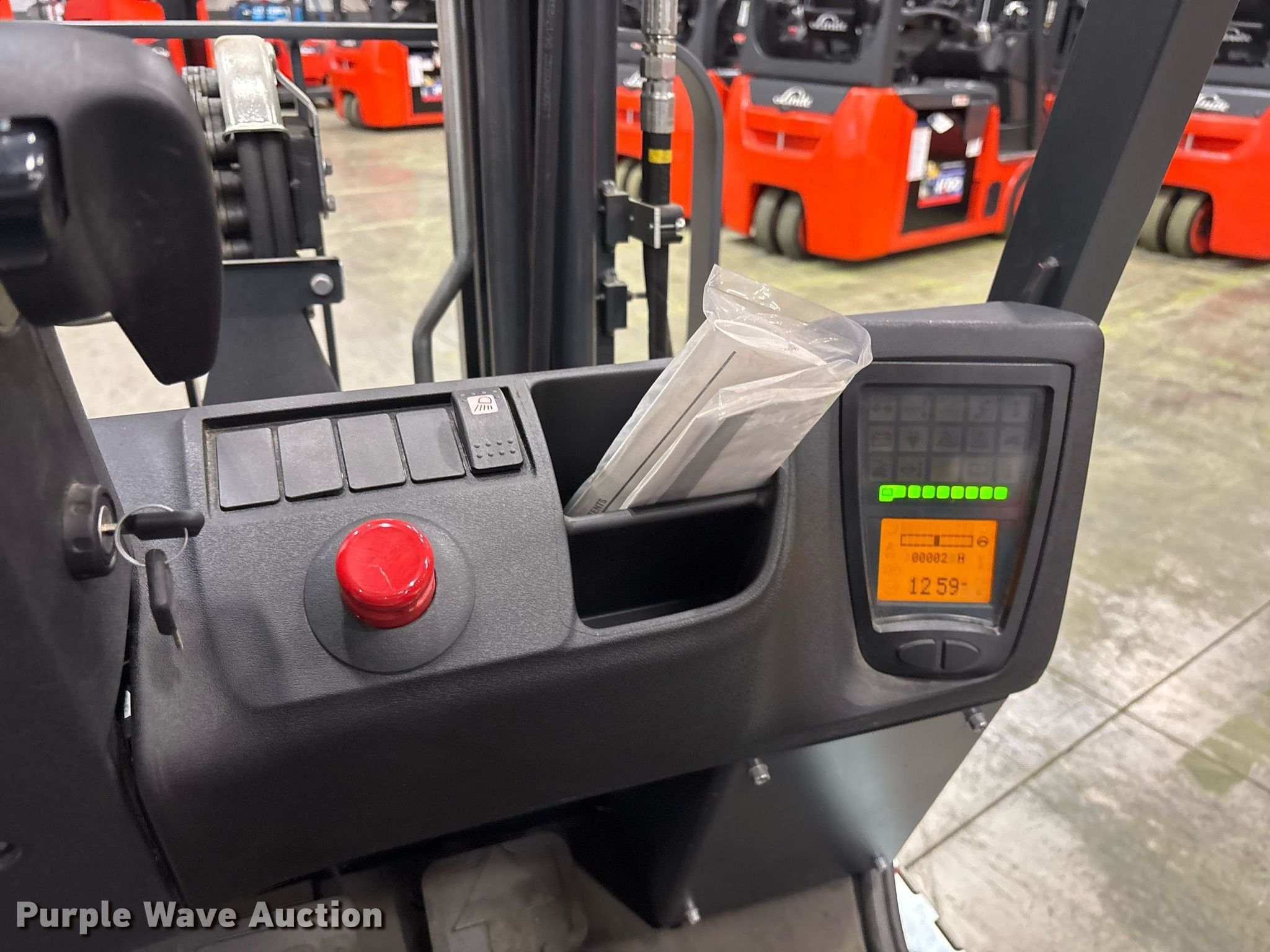 Purple Wave is selling a used Warehouse Forklift in Texas. This item is a 2023 Linde E18 forklift with the following: Hours: 2 on meter, Serial: A1Y346M00546