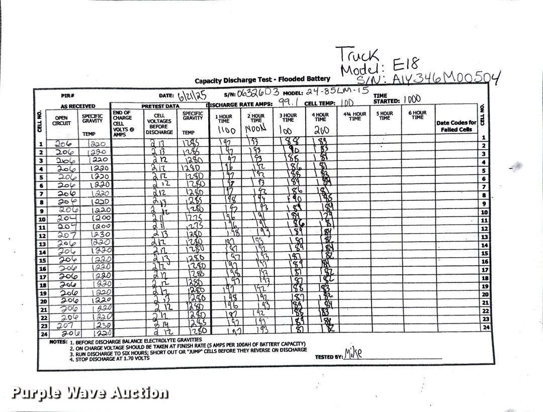 2023 Linde E18 forklift. Hours: 2 on meter, Serial: A1Y346M00504. Electric Motor Volts: 48, Phase: Three, Charger: Viking Ferro Phase: Three, Battery: Viking Intel Amp hour: 595. Transmission Electric drive. Operators station OROPS. Features Maximum lift capacity: 3,250 lbs, Maximum lift height: 188", Collapsed mast height: 84", Mast stages: 3, Side shift, Mast tilt, Fork length: 42". Tires Front: 18x7x12 1/8, Rear: 15x5x11 1/4, Solid. Notes 3 year or 6,000 hour warranty valid after predelivery inspection by licensed Linde dealer is complete Fees apply. Prologis - Linde Warranty Available. Lewisville, TX 75067