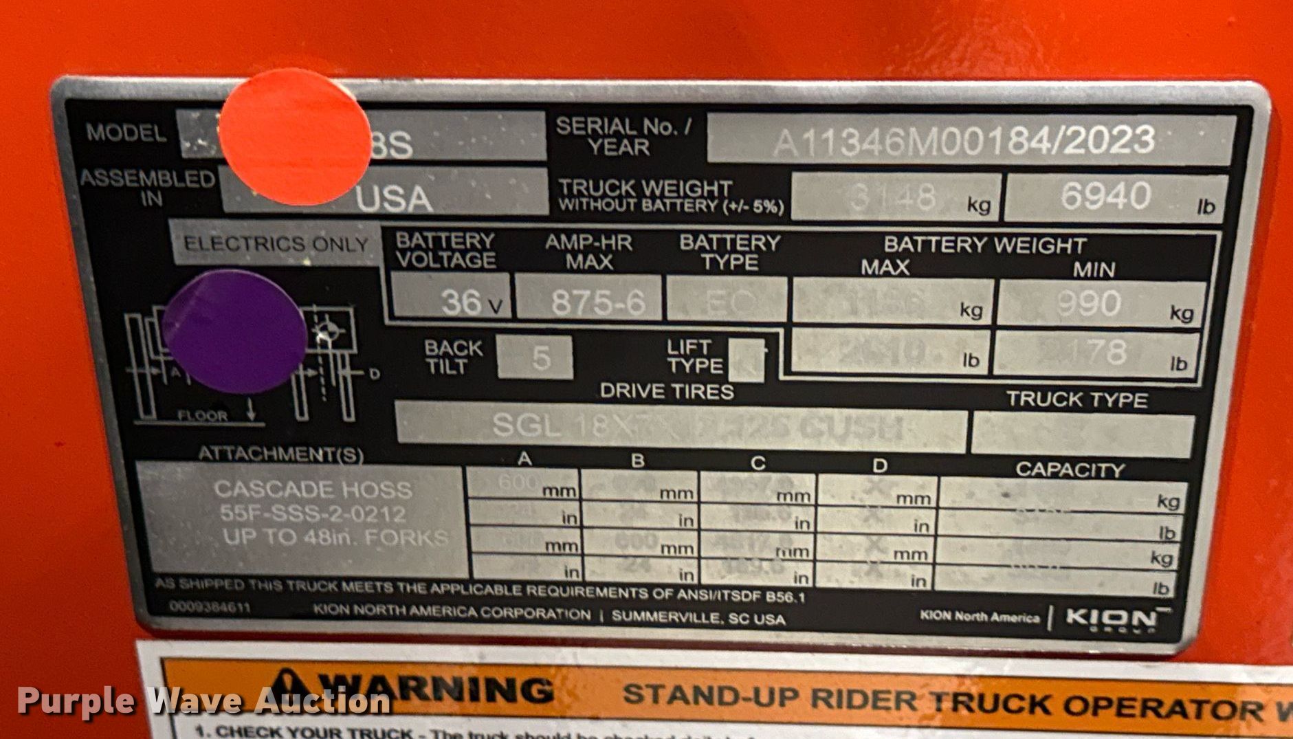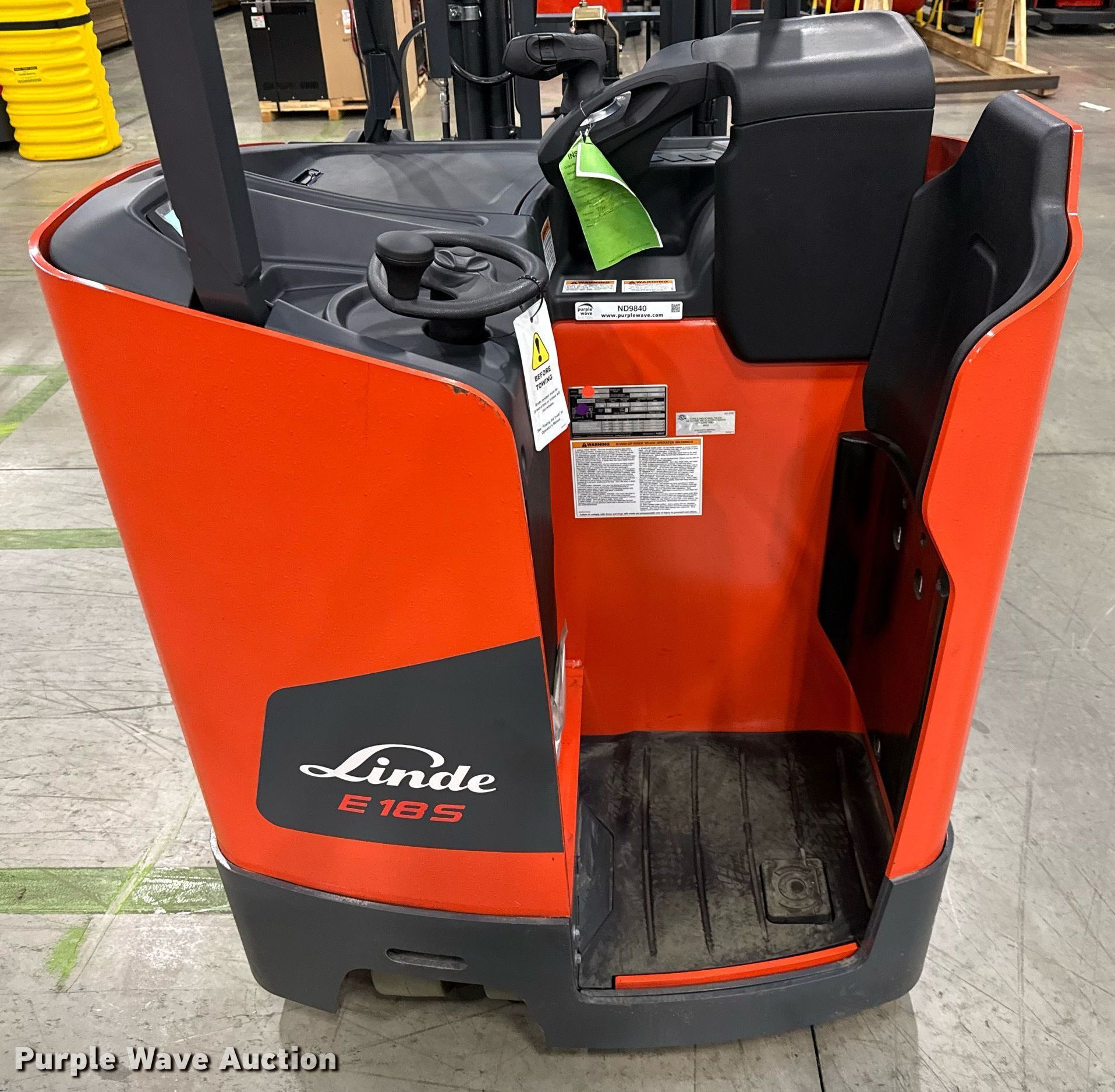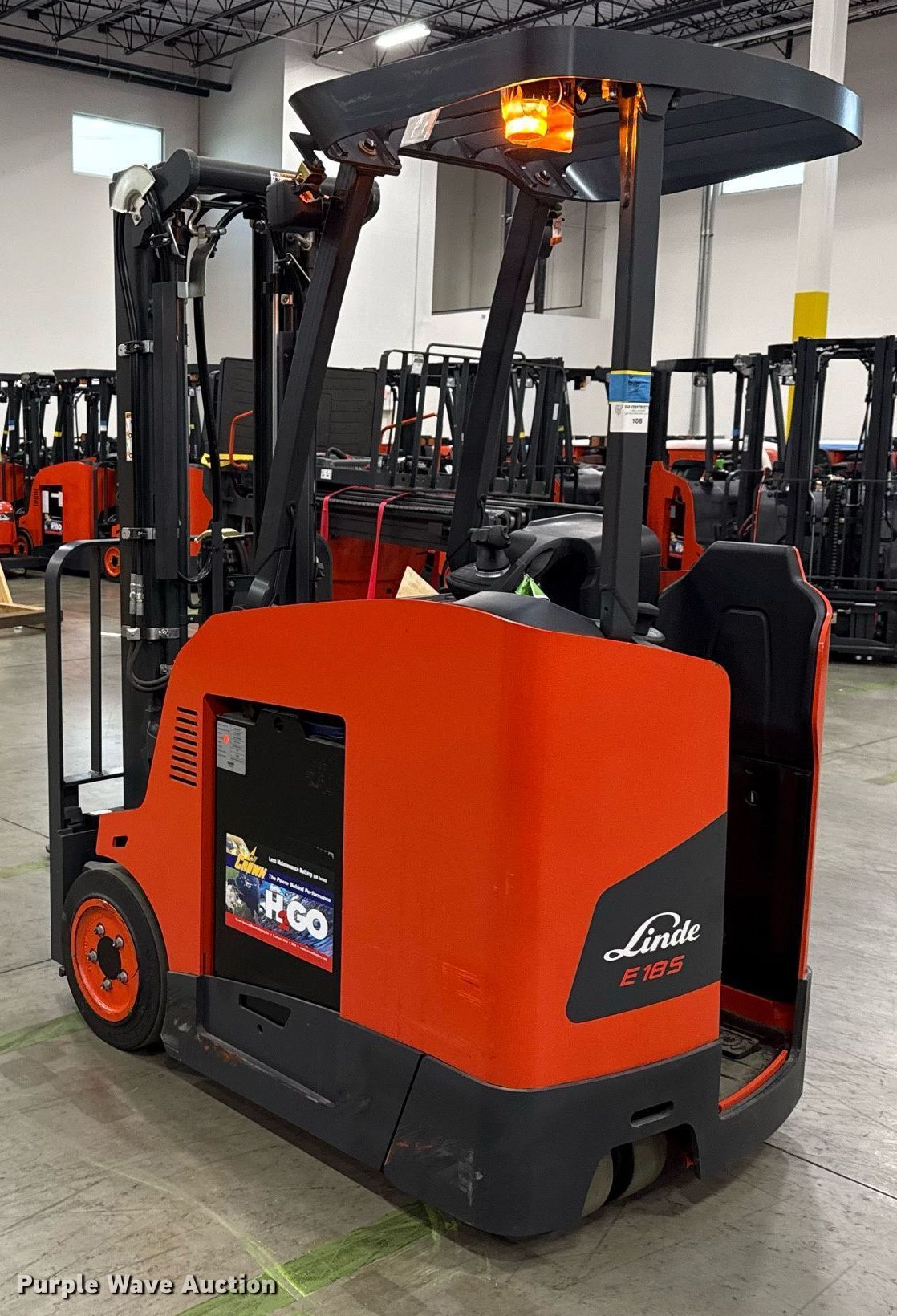 Purple Wave is selling a used Warehouse Forklift in Texas. This item is a 2023 Linde E18S forklift with the following: Hours: 3 on meter, Serial: A11346M00184
