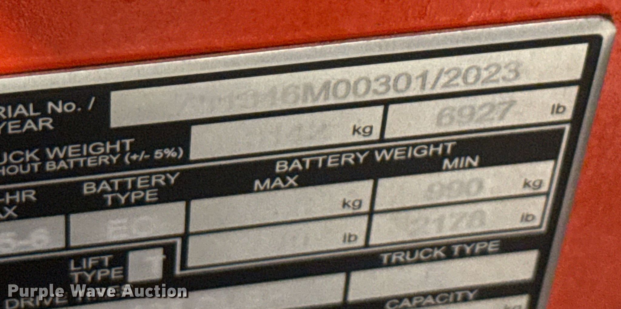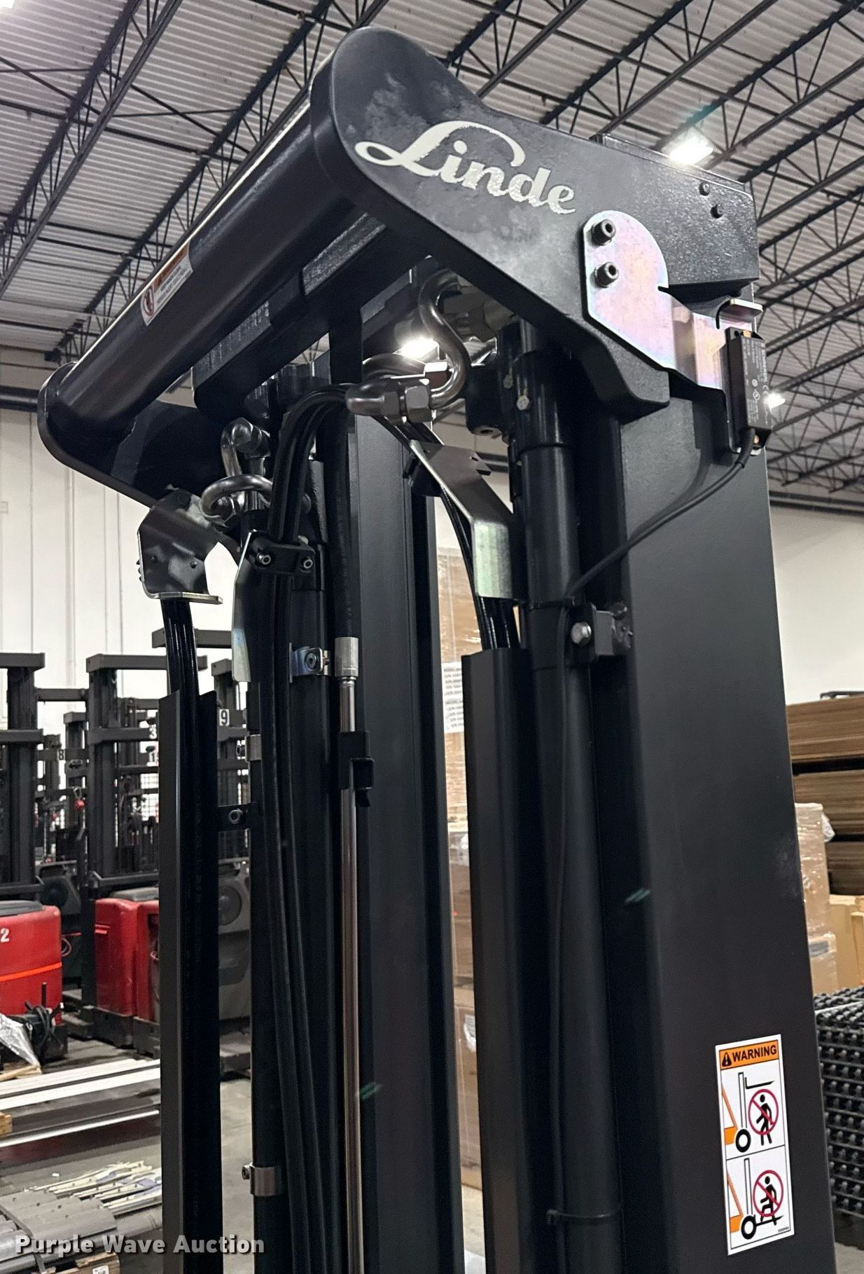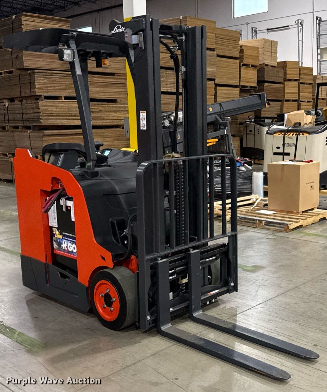 Purple Wave is selling a used Warehouse Forklift in Texas. This item is a 2023 Linde E18S forklift with the following: Hours: 4 on meter, Serial: A11346M00301