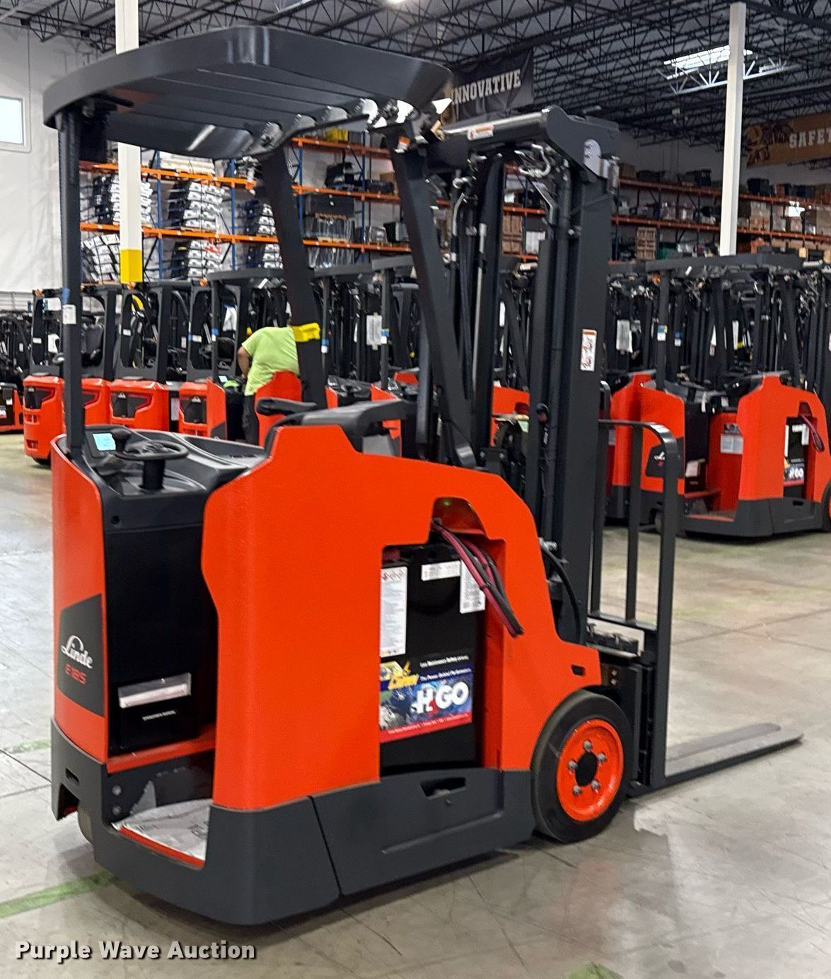 Purple Wave is selling a used Warehouse Forklift in Texas. This item is a 2023 Linde E18S forklift with the following: Hours: 6 on meter, Serial: A11346M00304
