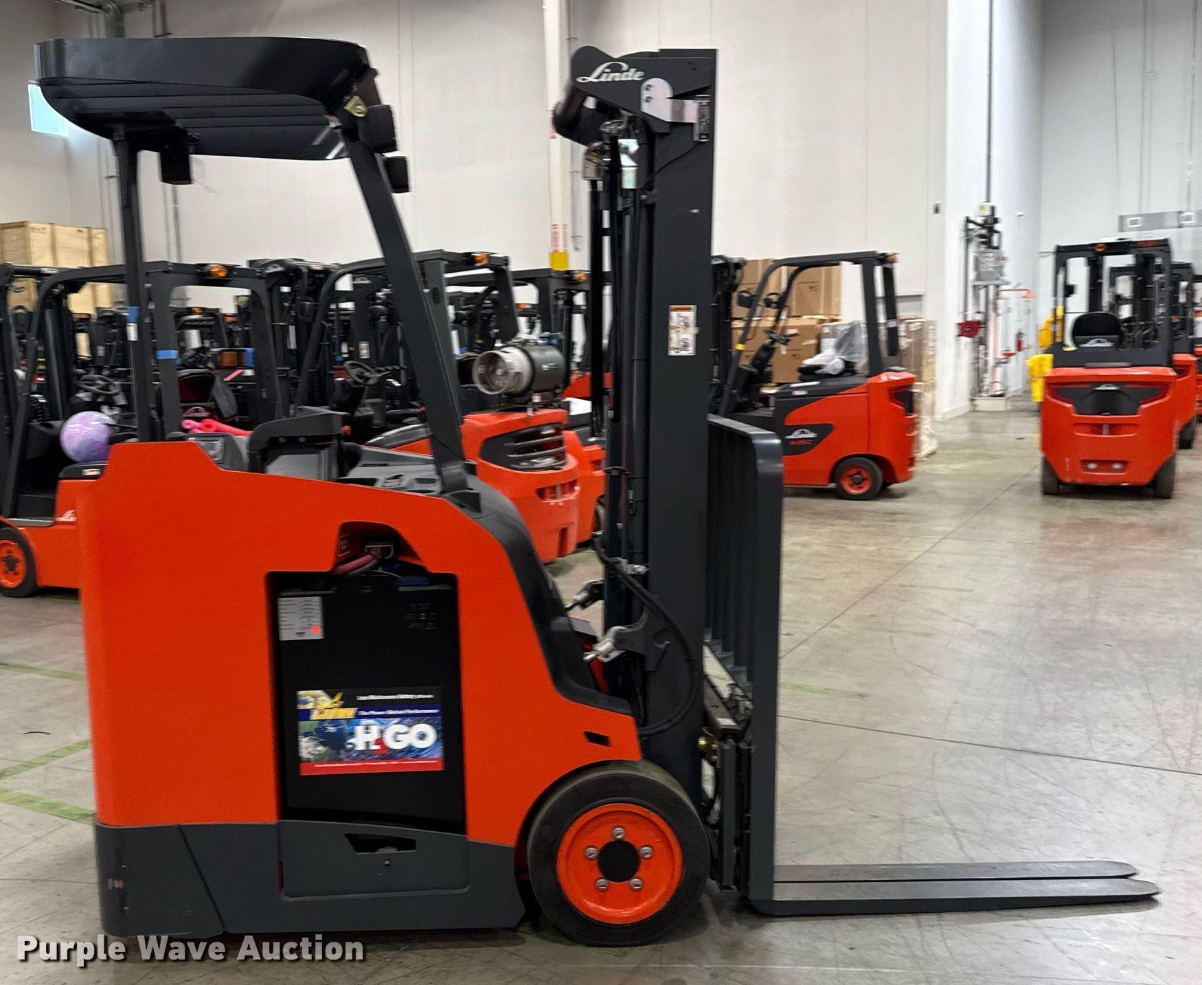Purple Wave is selling a used Warehouse Forklift in Texas. This item is a 2023 Linde E18S forklift with the following: Hours: 6 on meter, Serial: A11346M00195