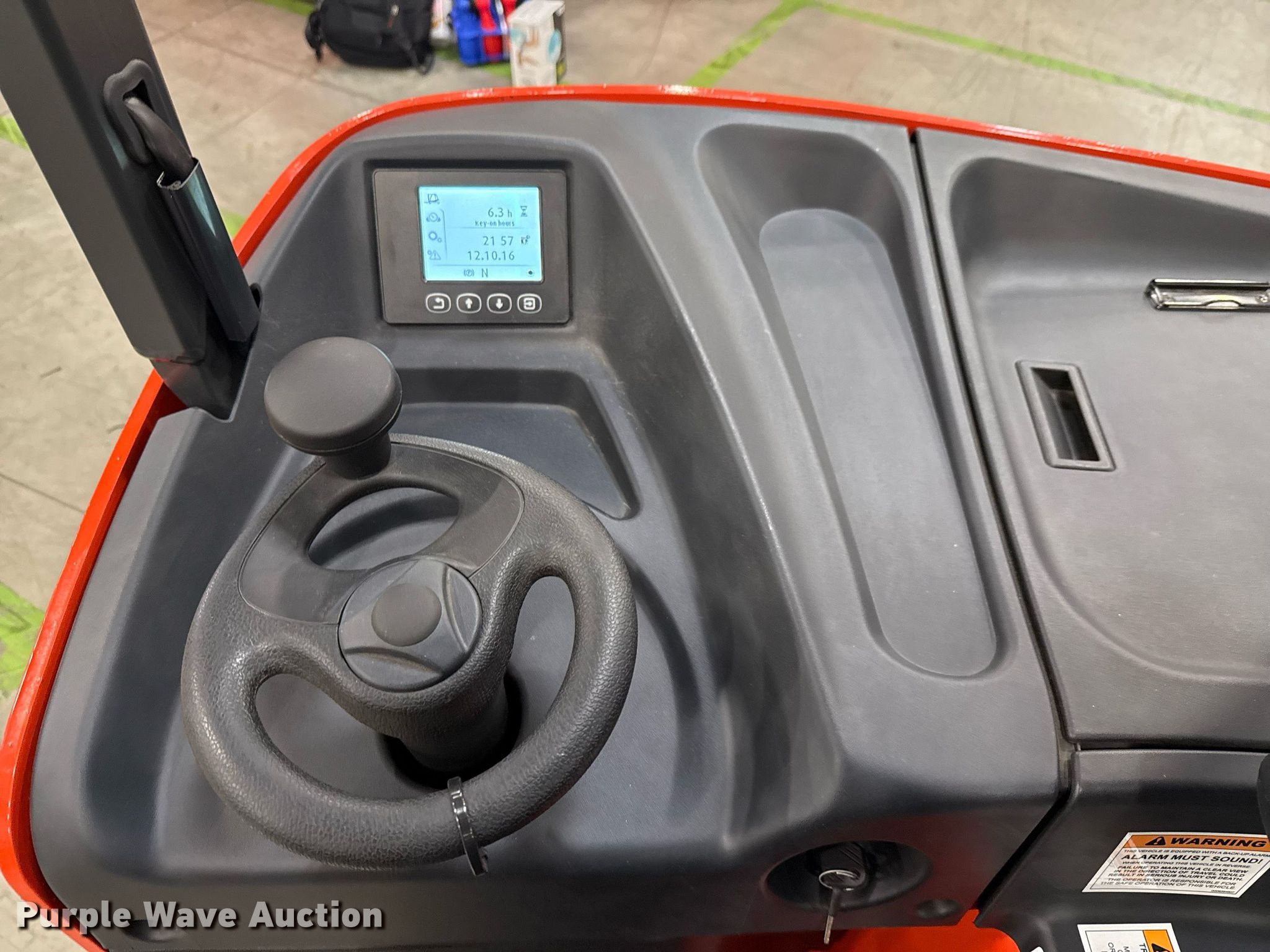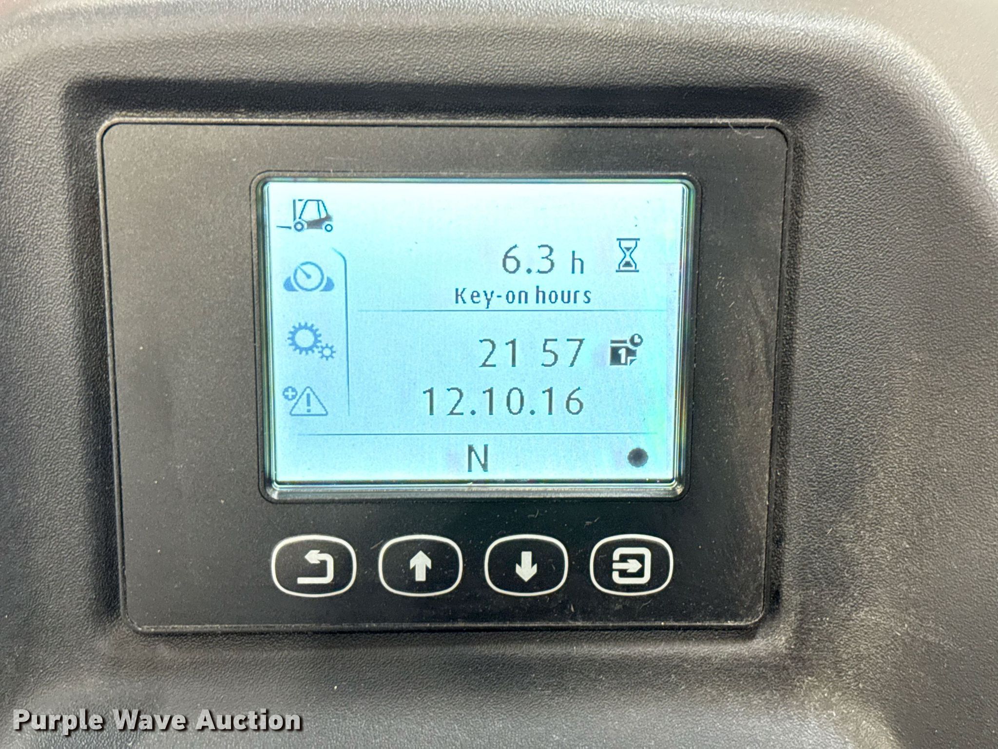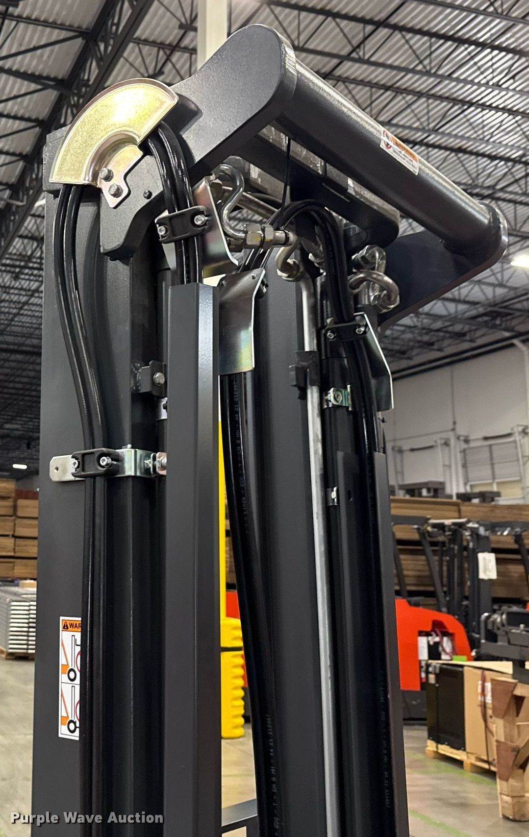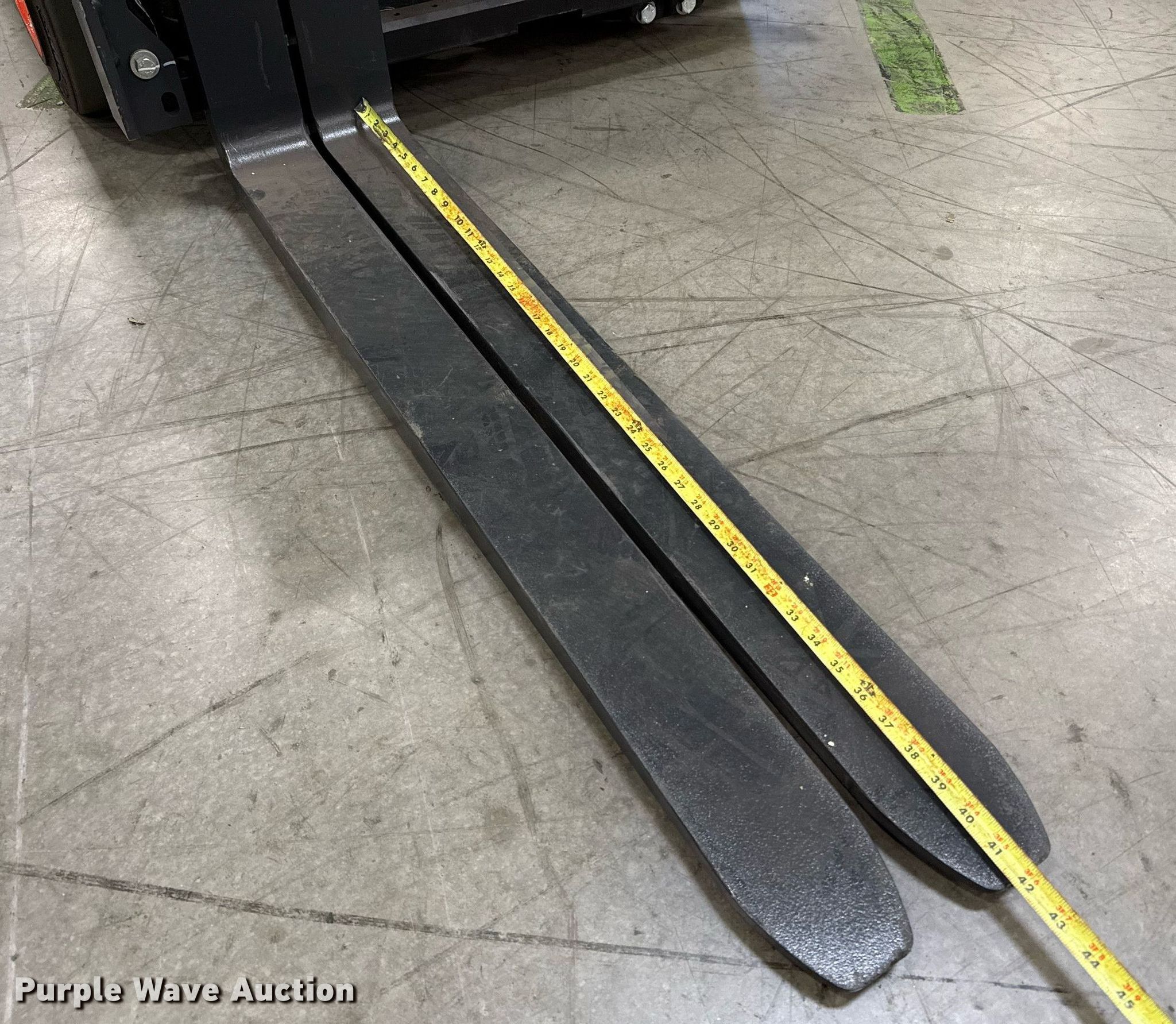 2023 Linde E18S forklift. Hours: 6 on meter, Serial: A11346M00195. Electric Motor Volts: 36, Charger: Viking Ferro Three phase, Battery: Crown 18-125LM-15 Serial: 06378D3, 875AH, Water kit. Transmission Electric drive. Operators station OROPS. Features Maximum lift capacity: 3,275 lbs, Maximum lift height: 189", Collapsed mast height: 88", Mast stages: 3, Side shift, Mast tilt, Fork length: 42". Tires Front: 18x7x12 1/8, Rear: 10x5x6.5, Solid. Notes 3 year or 6,000 hour warranty valid after predelivery inspection by licensed Linde dealer is complete. Fees apply. Prologis - Linde Warranty Available. Lewisville, TX 75067
