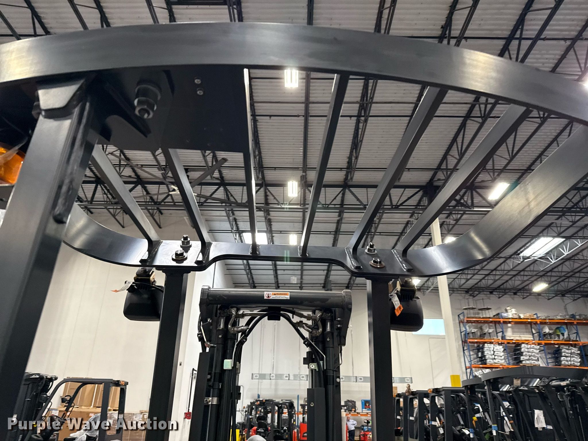 2023 Linde E18S forklift. Hours: 4 on meter, Serial: A11346M00161. Electric Motor Volts: 36, Charger: Viking Ferro Three phase, Battery: Crown 18-125LM-15 Serial 06380D3, 875AH, Water kit. Transmission Electric drive. Operators station OROPS. Features Maximum lift capacity: 3,265 lbs, Maximum lift height: 189", Collapsed mast height: 88", Mast stages: 3, Side shift, Mast tilt, Fork length: 42". Tires Front: 18x7x12 1/8, Rear: 10x5x6.5, Solid. Notes 3 year or 6,000 hour warranty valid after predelivery inspection by licensed Linde dealer is complete. Fees apply. Prologis - Linde Warranty Available. Lewisville, TX 75067