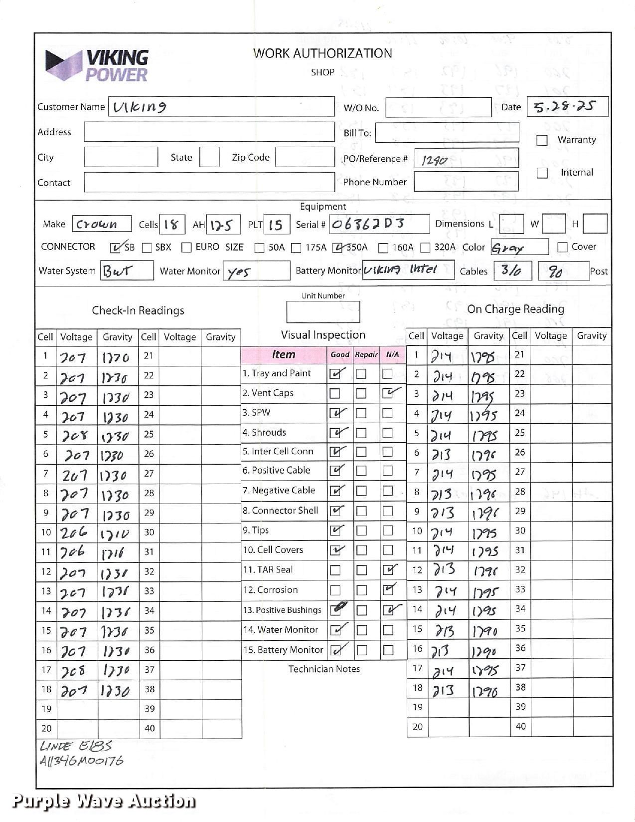2023 Linde E18S forklift. Hours: 4 on meter, Serial: A11346M00192. Electric Motor Volts: 36, Charger: Viking Ferro Three phase, Battery: Crown 18-125LM-15 Serial: 06362D3, 875AH, Water kit. Transmission Electric drive. Operators station OROPS. Features Maximum lift capacity: 3,275 lbs, Maximum lift height: 189", Collapsed mast height: 88", Mast stages: 3, Side shift, Mast tilt, Fork length: 42". Tires Front: 18x7x12 1/8, Rear: 10x5x6.5, Solid. Notes 3 year or 6,000 hour warranty valid after predelivery inspection by licensed Linde dealer is complete. Fees apply. Prologis - Linde Warranty Available. Lewisville, TX 75067