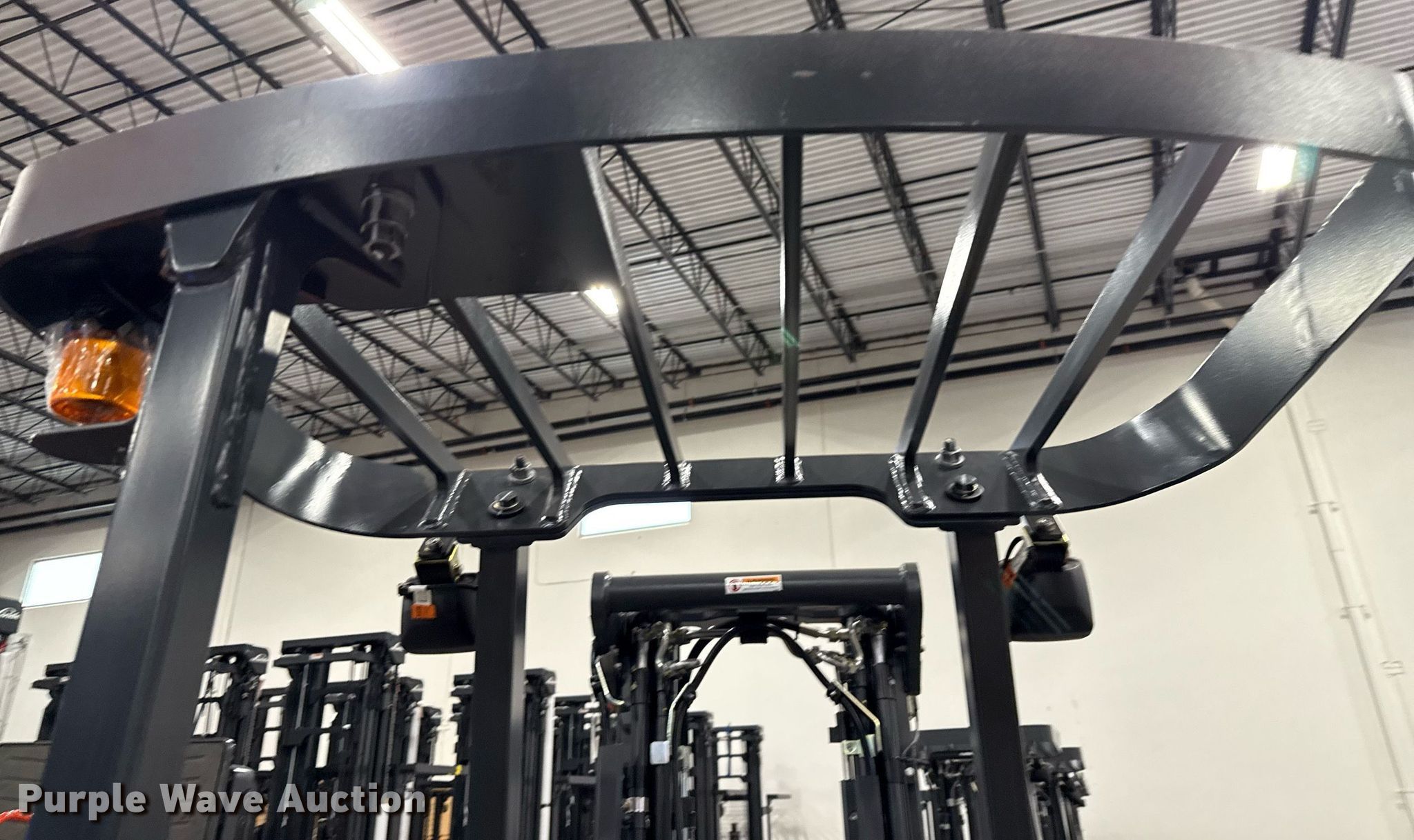 2023 Linde E18S forklift. Hours: 5 on meter, Serial: A11346M00305. Electric Motor Volts: 36, Charger: Viking Ferro Three phase, Battery: Crown 18-125LM-15 Serial: 06360D3, 875AH, Water kit. Transmission Electric drive. Operators station OROPS. Features Maximum lift capacity: 3,275 lbs, Maximum lift height: 189", Collapsed mast height: 88", Mast stages: 3, Side shift, Mast tilt, Fork length: 42". Tires Front: 18x7x12 1/8, Rear: 10x5x6.5, Solid. Notes 3 year or 6,000 hour warranty valid after predelivery inspection by licensed Linde dealer is complete. Fees apply. Prologis - Linde Warranty Available. Lewisville, TX 75067