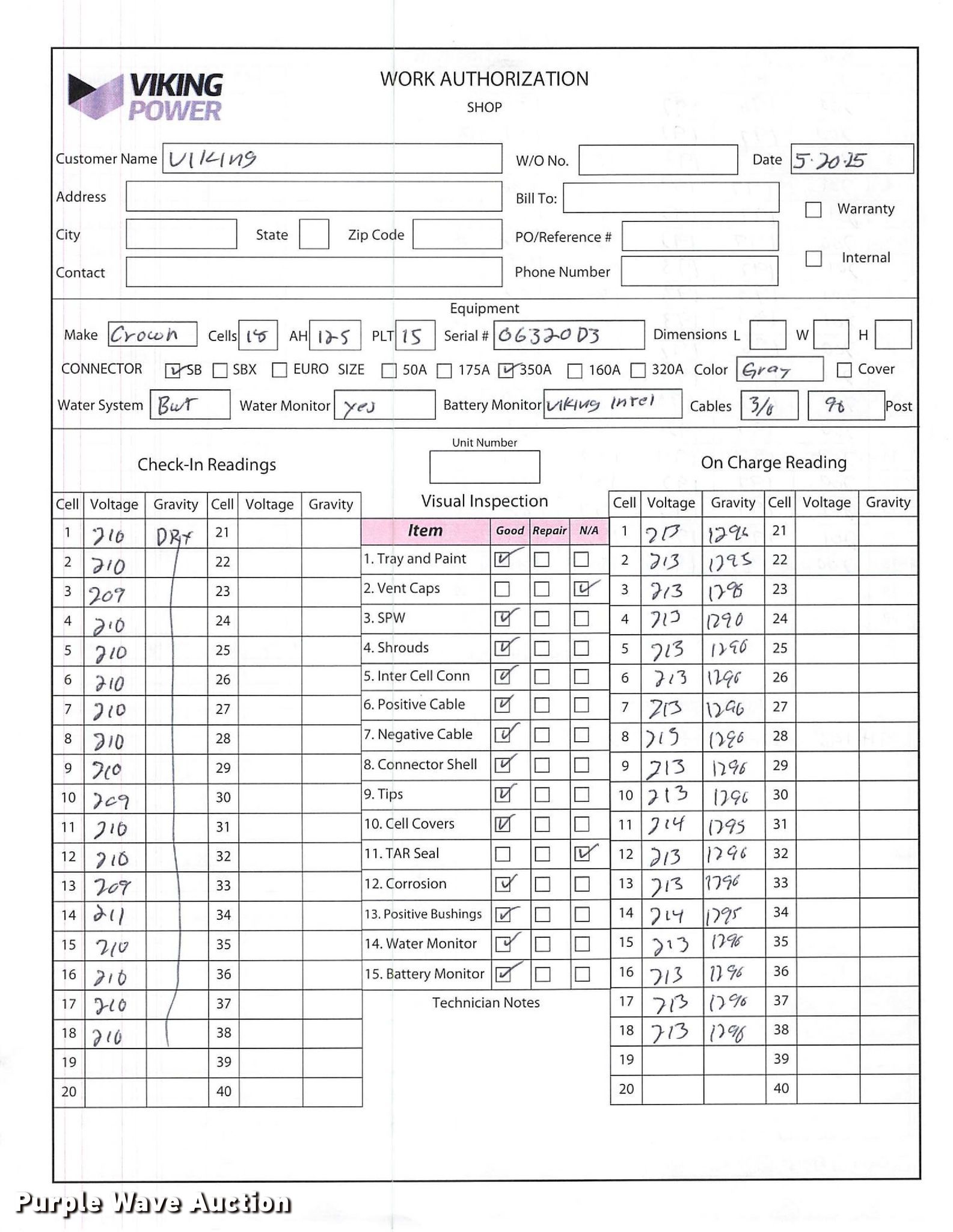 2023 Linde E18S forklift. Hours: 2 on meter, Serial: A11346M00185. Electric Motor Volts: 36, Charger: Viking Ferro Three phase, Battery: Crown 18-125LM-15 Serial: 06320D3, 875AH, Water kit. Transmission Electric drive. Operators station OROPS. Features Maximum lift capacity: 3,275 lbs, Maximum lift height: 189", Collapsed mast height: 88", Mast stages: 3, Side shift, Mast tilt, Fork length: 42". Tires Front: 18x7x12 1/8, Rear: 10x5x6.5, Solid. Notes 3 year or 6,000 hour warranty valid after predelivery inspection by licensed Linde dealer is complete. Fees apply. Prologis - Linde Warranty Available. Lewisville, TX 75067