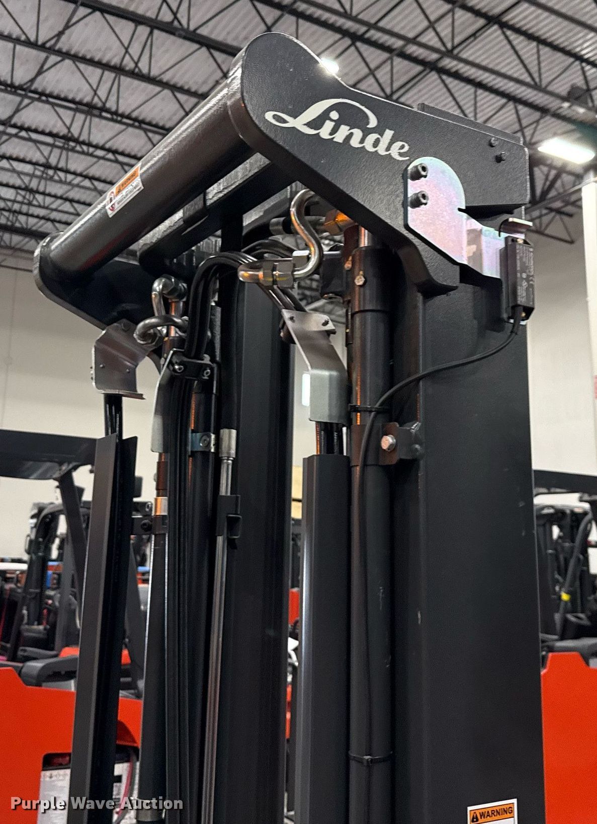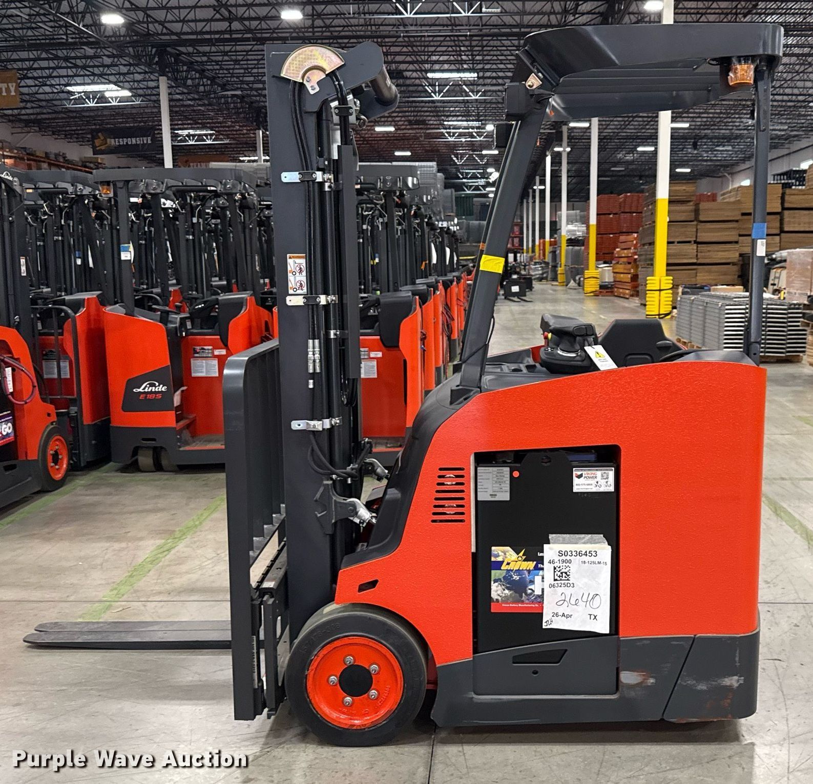 Purple Wave is selling a used Warehouse Forklift in Texas. This item is a 2023 Linde E18S forklift with the following: Hours: 5 on meter, Serial: A11346M00302