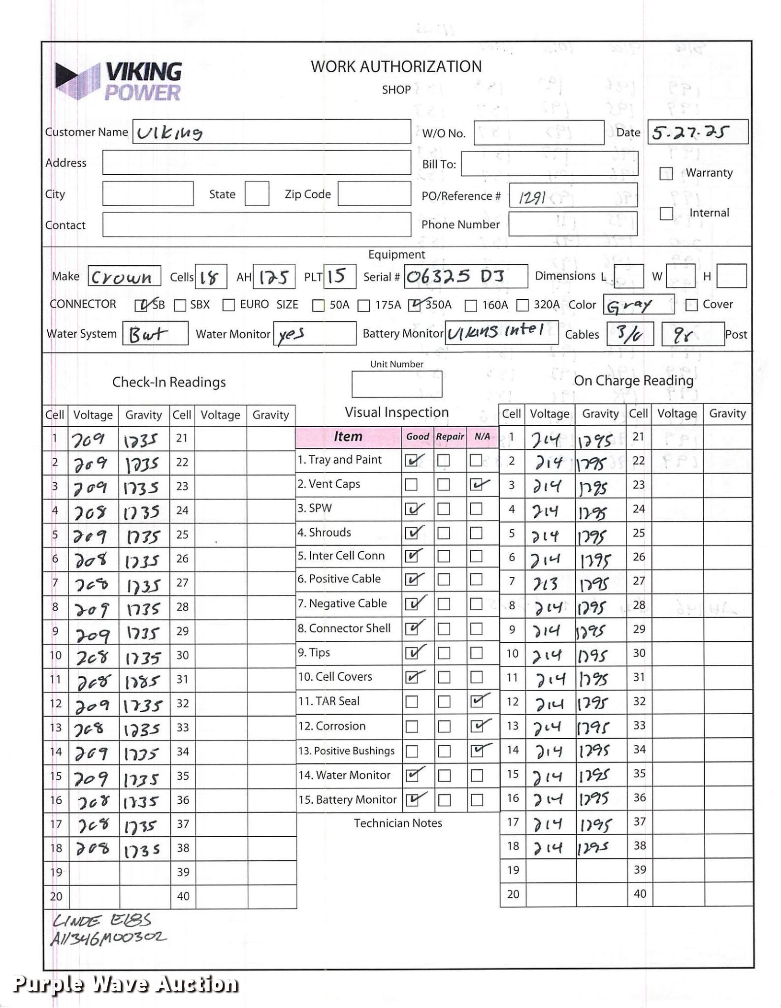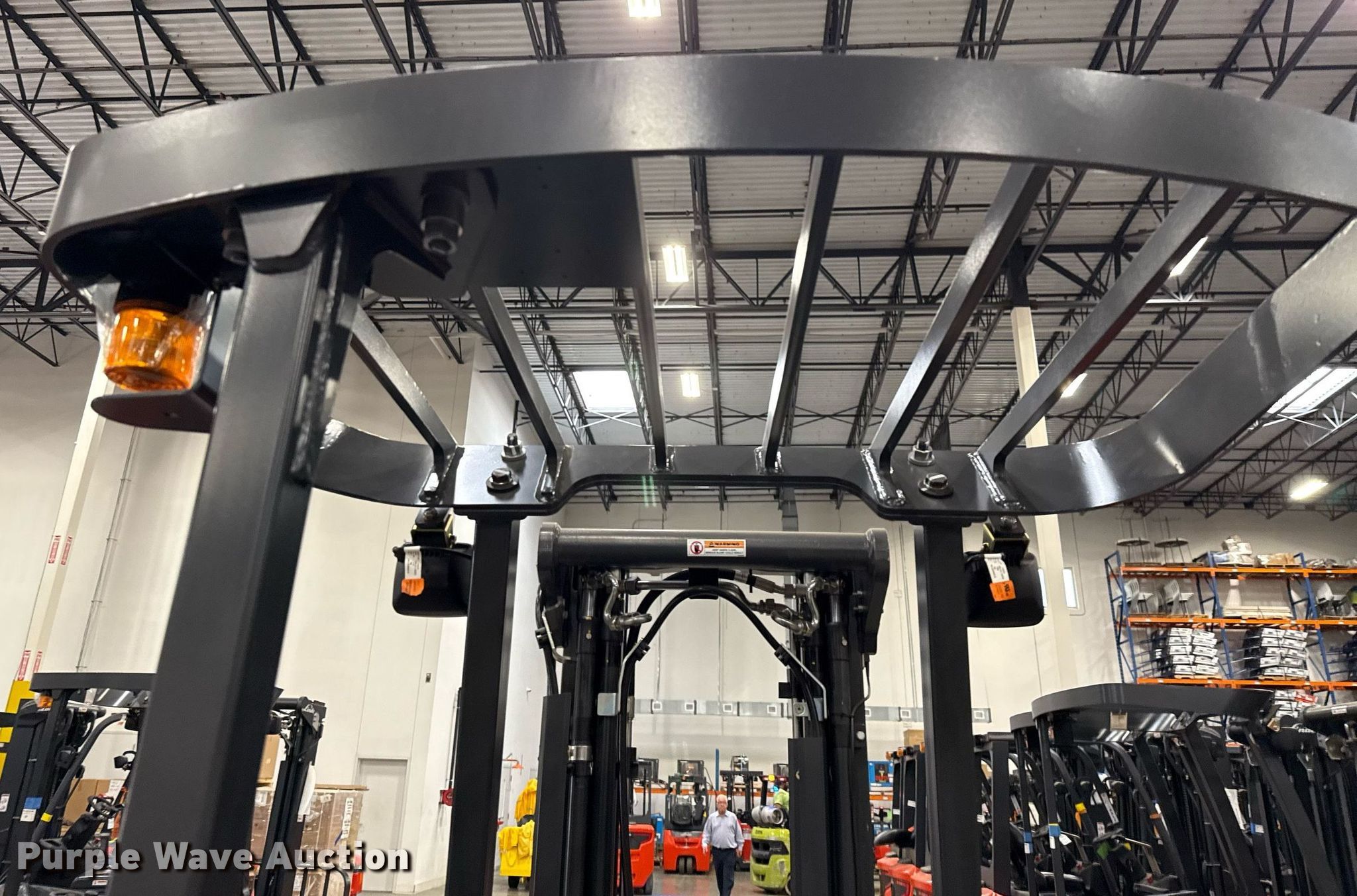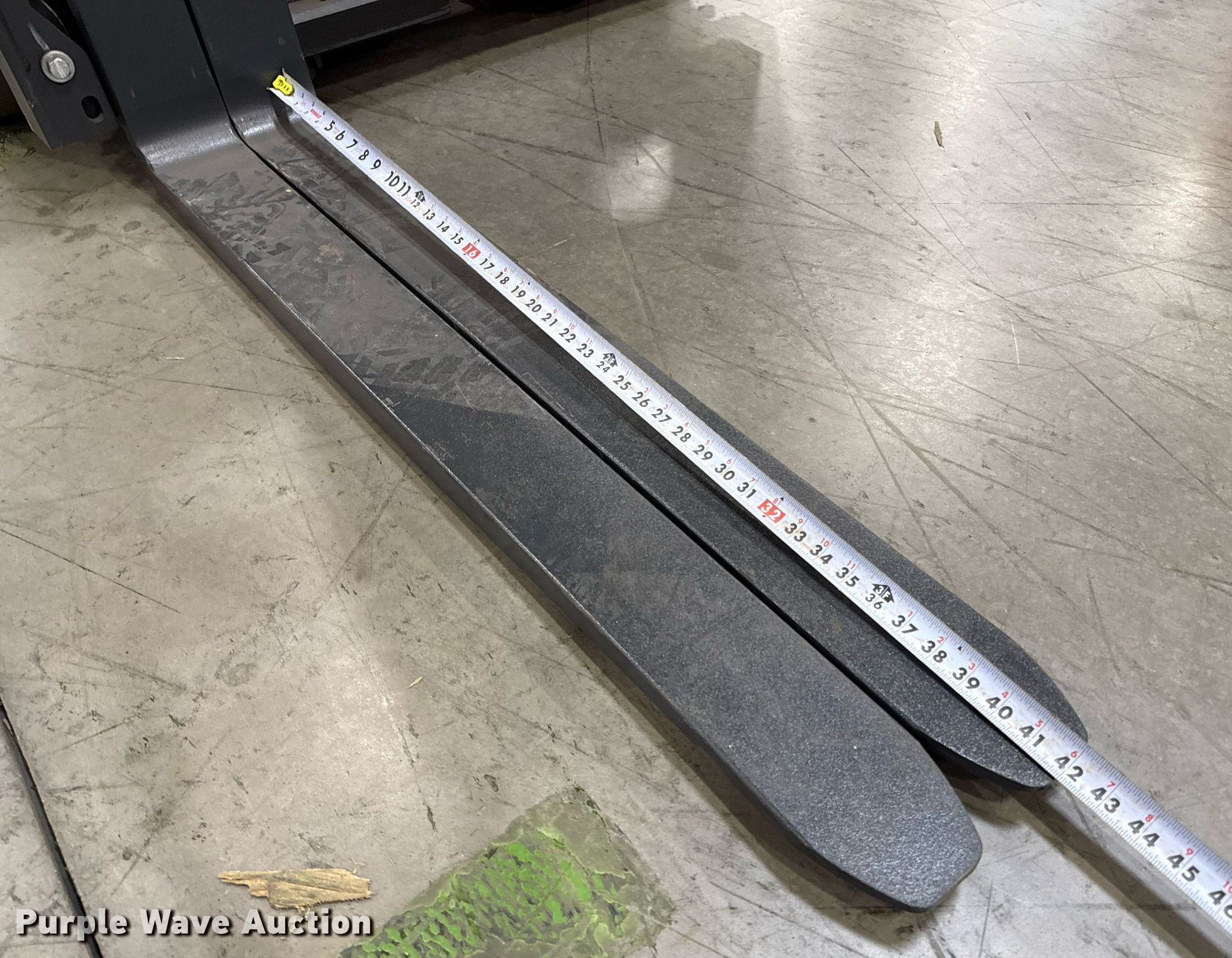 2023 Linde E18S forklift. Hours: 5 on meter, Serial: A11346M00302. Electric Motor Volts: 36, Charger: Viking Ferro Three phase, Battery: Crown 18-125LM-15 Serial: 06325D3, 875AH, Water kit. Transmission Electric drive. Operators station OROPS. Features Maximum lift capacity: 3,275 lbs, Maximum lift height: 189", Collapsed mast height: 88", Mast stages: 3, Side shift, Mast tilt, Fork length: 42". Tires Front: 18x7x12 1/8, Rear: 10x5x6.5, Solid. Notes 3 year or 6,000 hour warranty valid after predelivery inspection by licensed Linde dealer is complete. Fees apply. Prologis - Linde Warranty Available. Lewisville, TX 75067