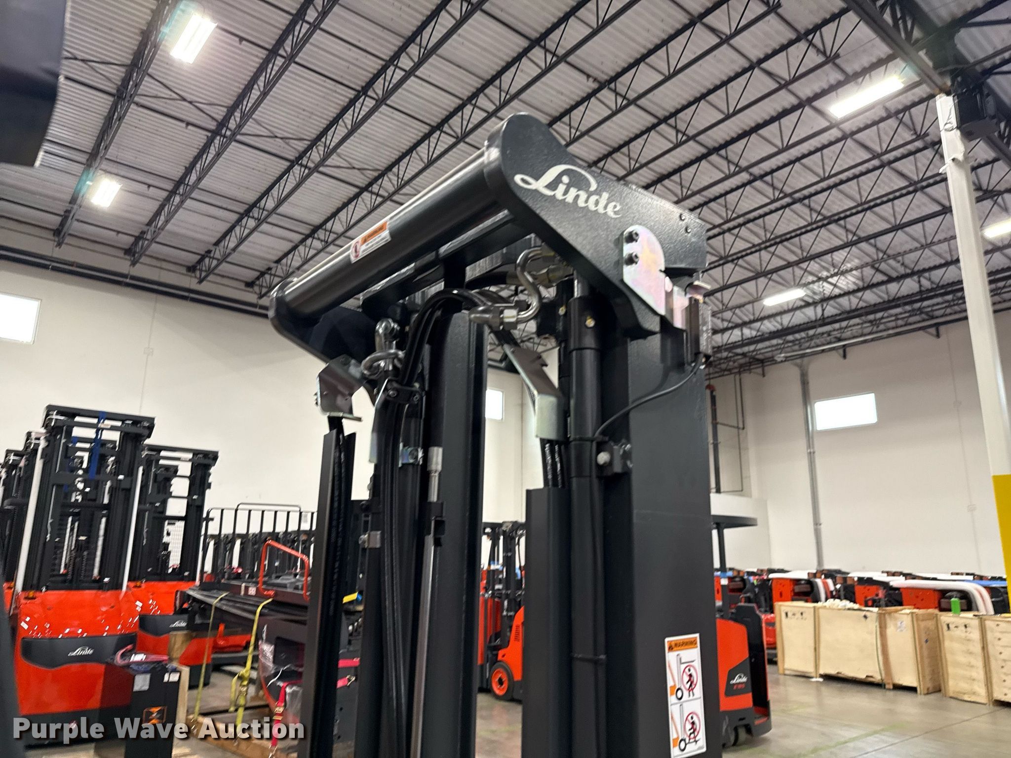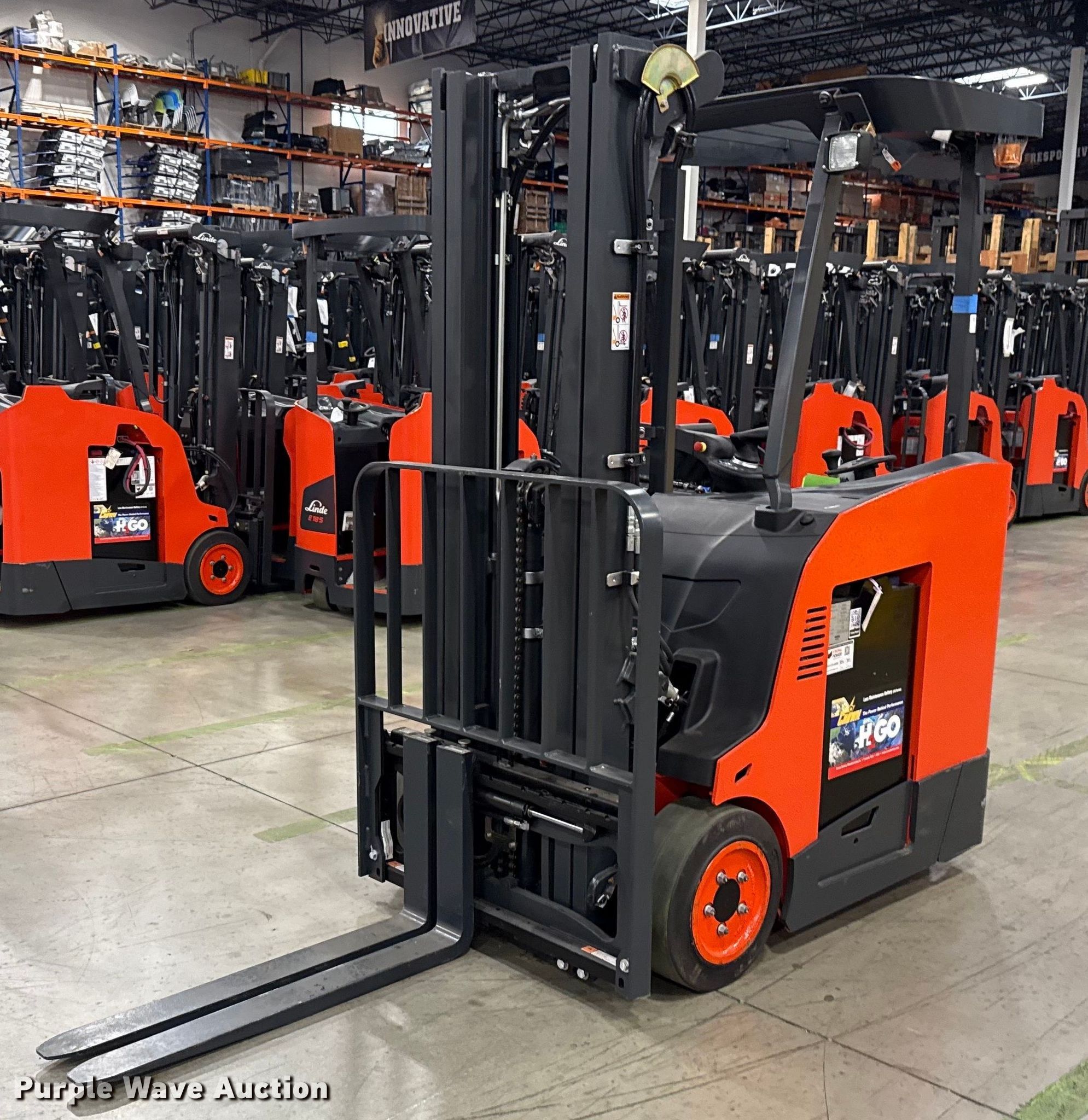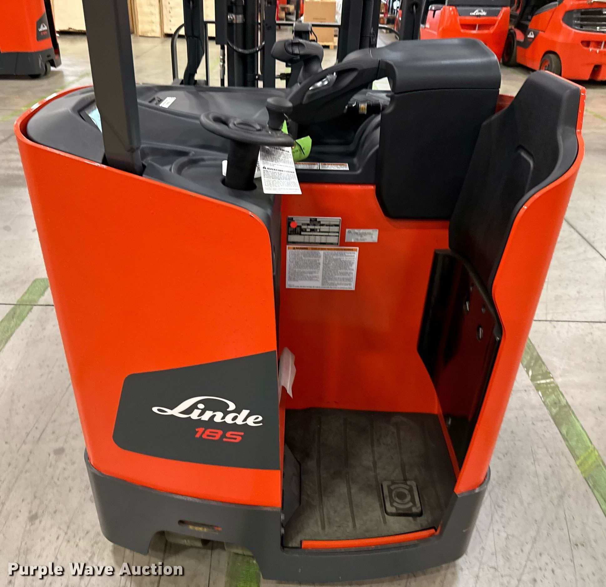 Purple Wave is selling a used Warehouse Forklift in Texas. This item is a 2023 Linde E18S forklift with the following: Hours: 5 on meter, Serial: A11346M00178