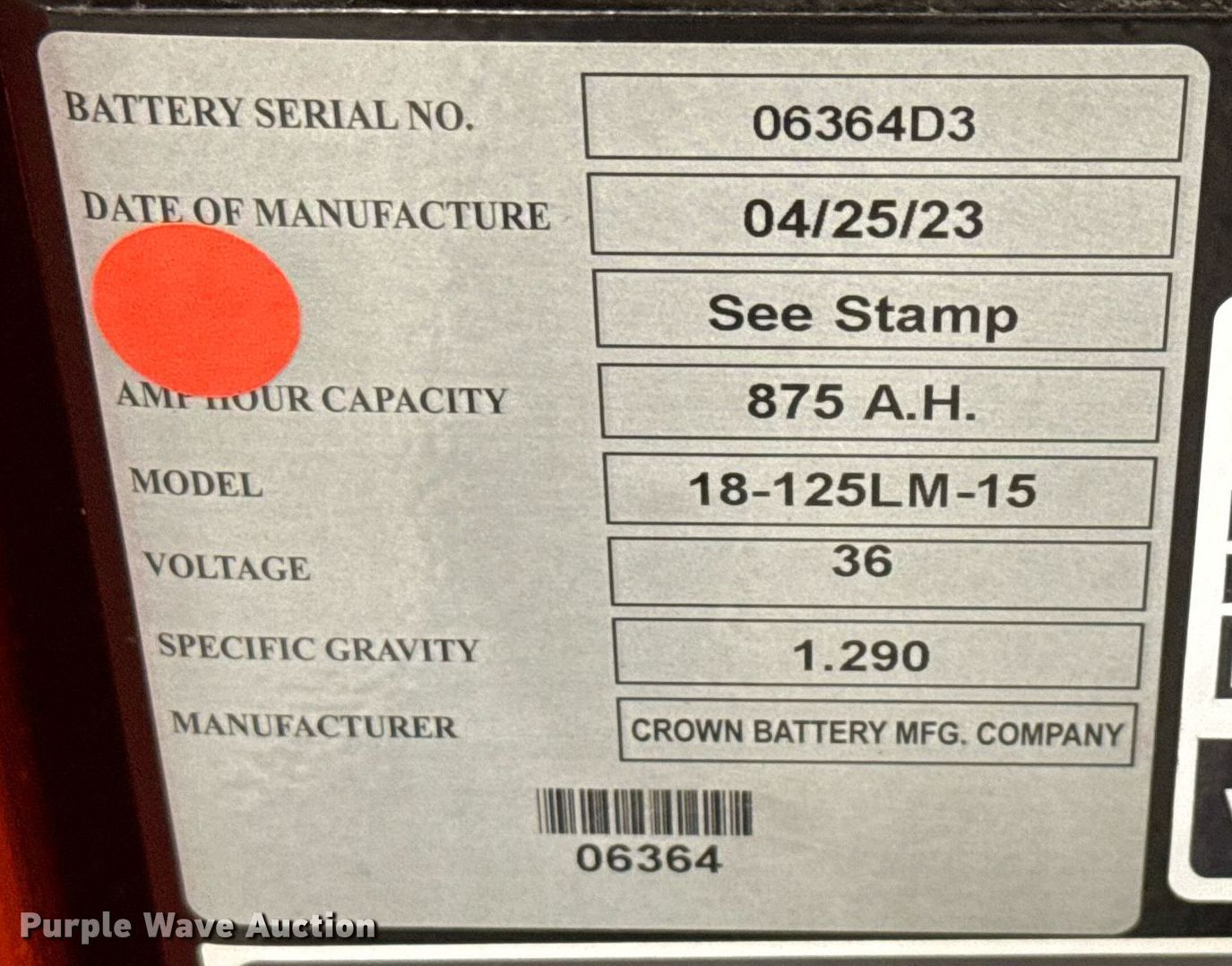 - Battery: Crown 18-125LM-15