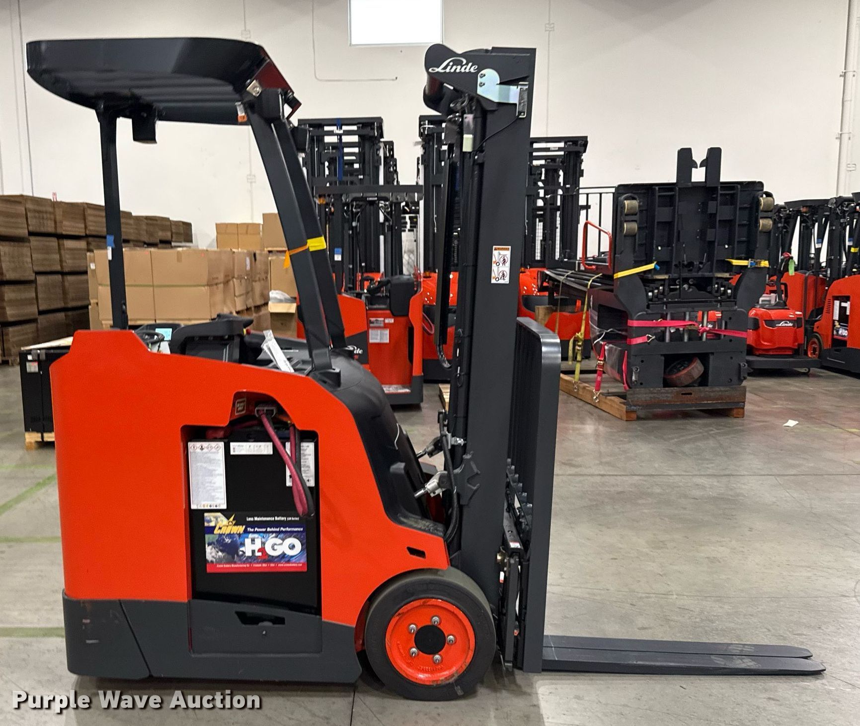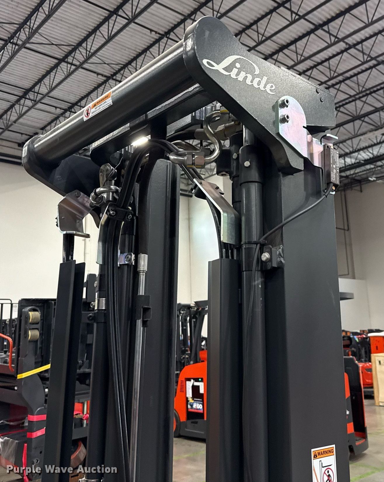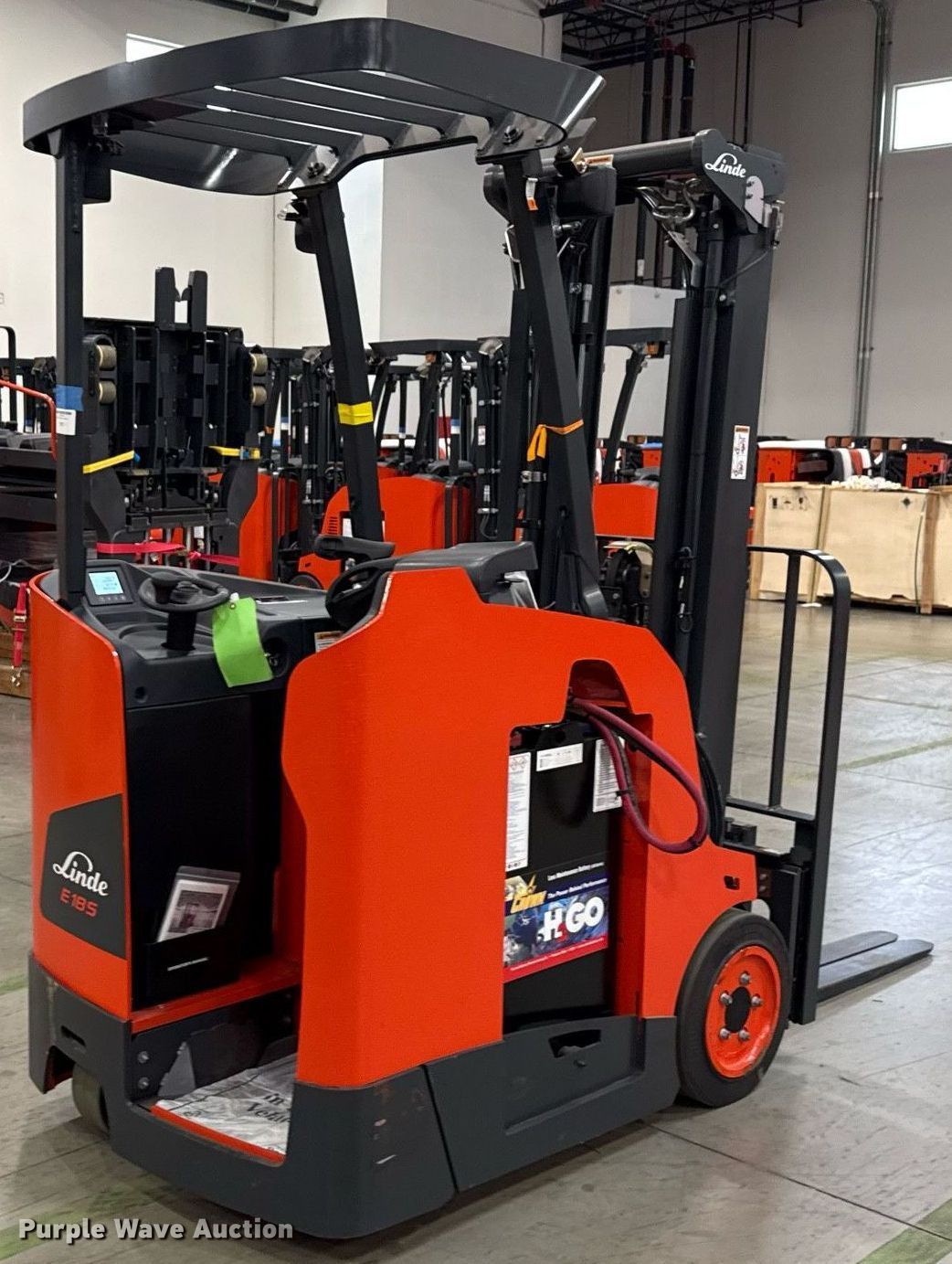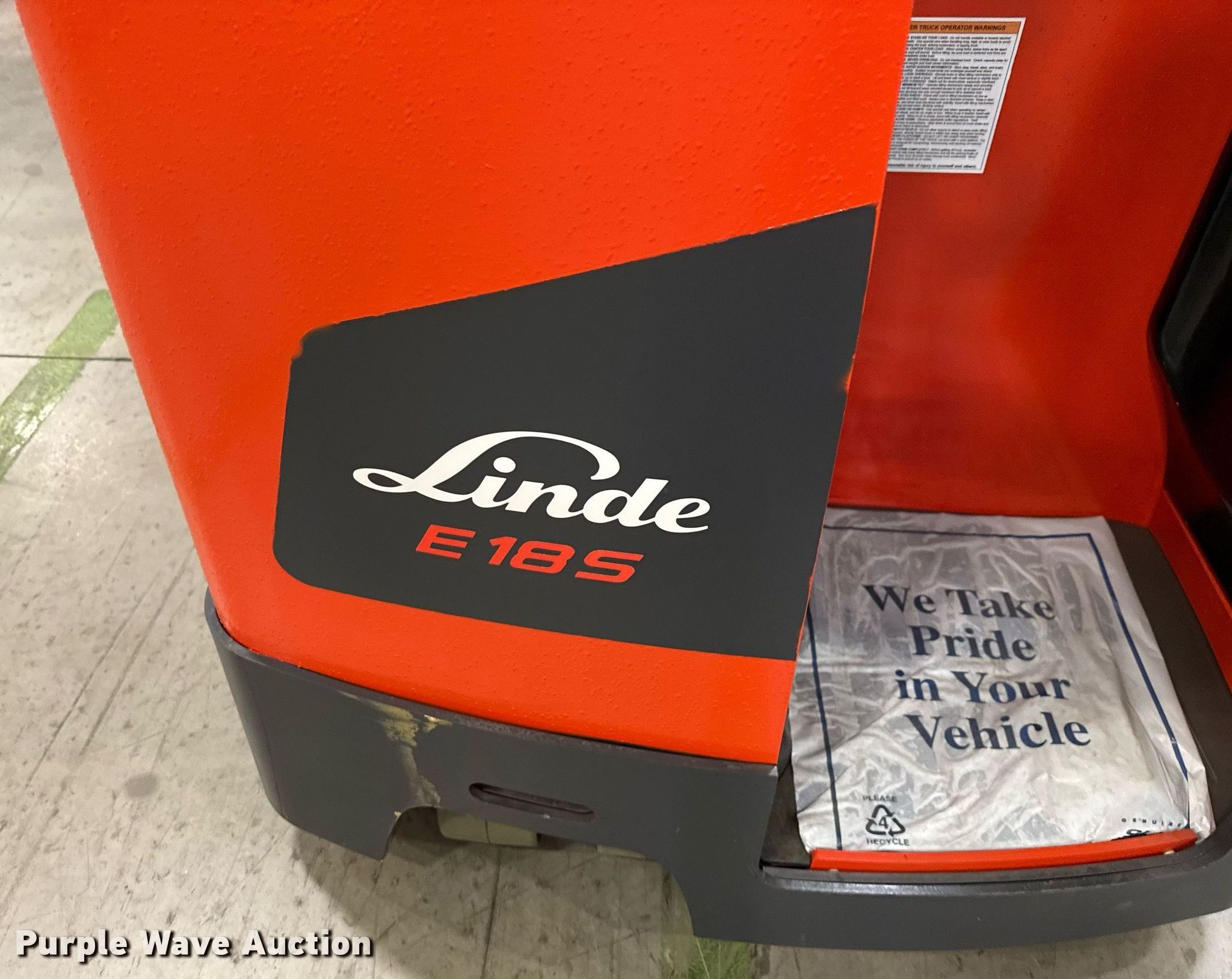 Purple Wave is selling a used Warehouse Forklift in Texas. This item is a 2023 Linde E18S forklift with the following: Hours: 3 on meter, Serial: A11346M00298